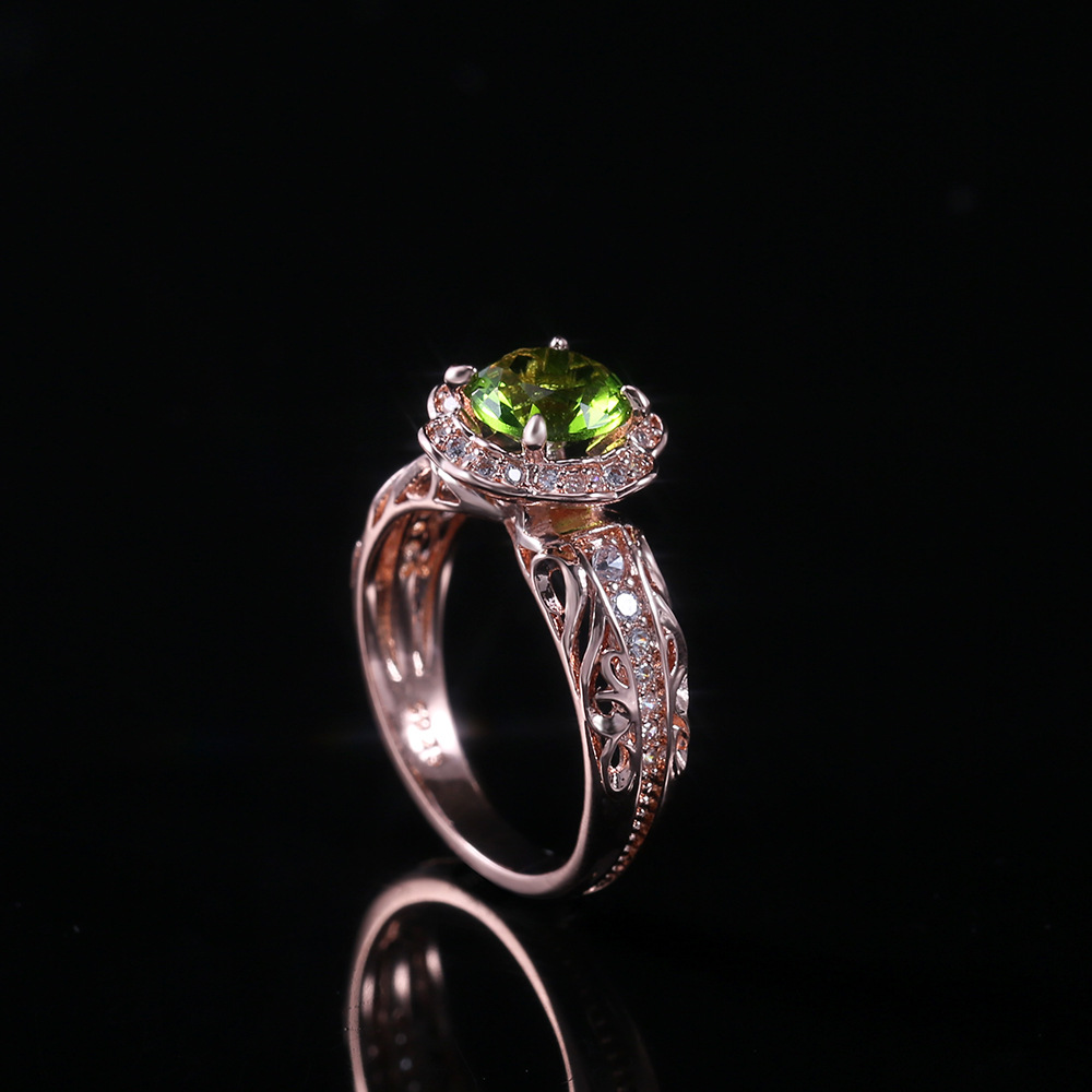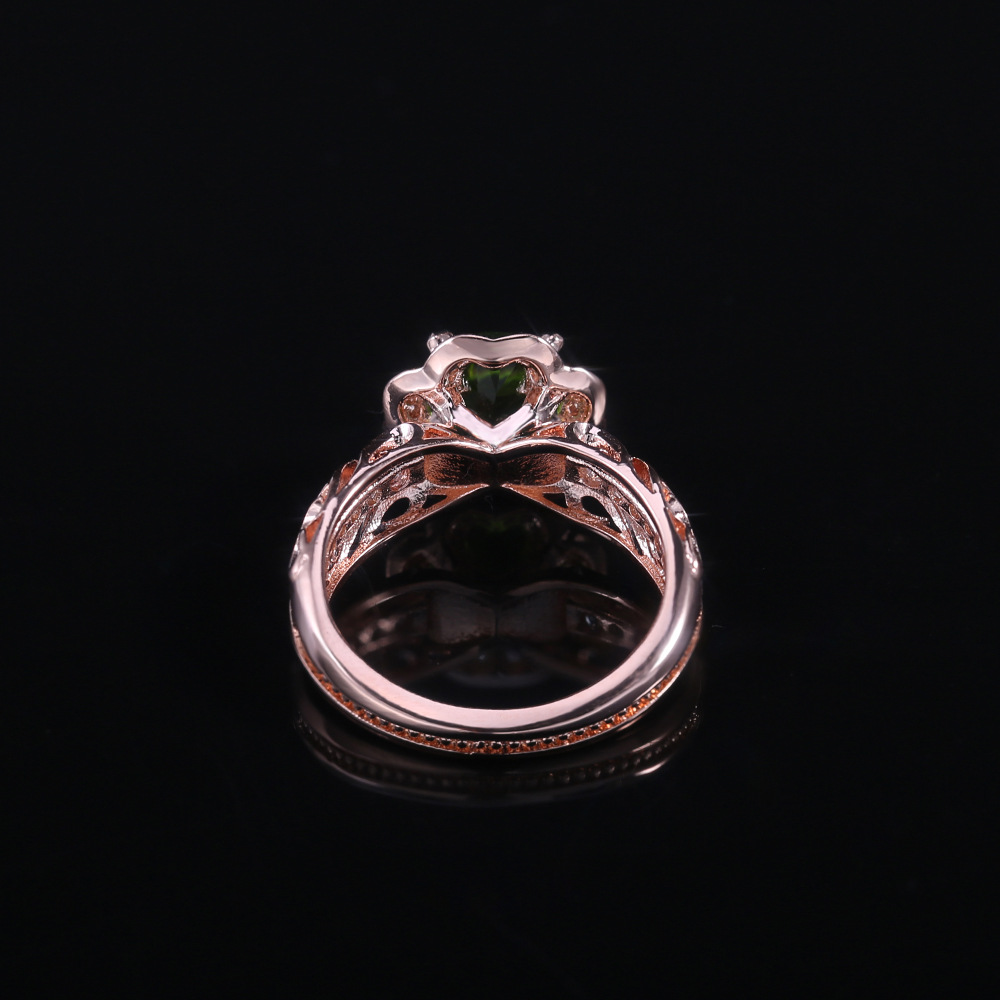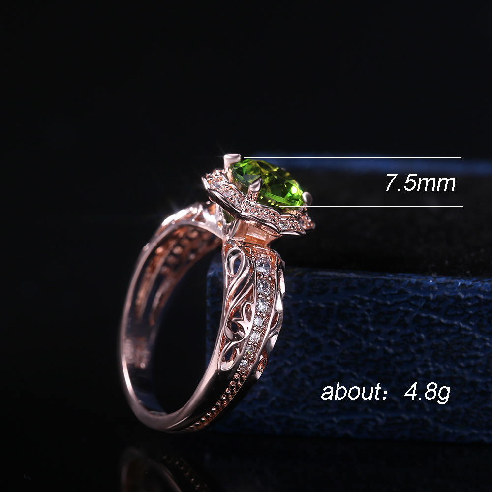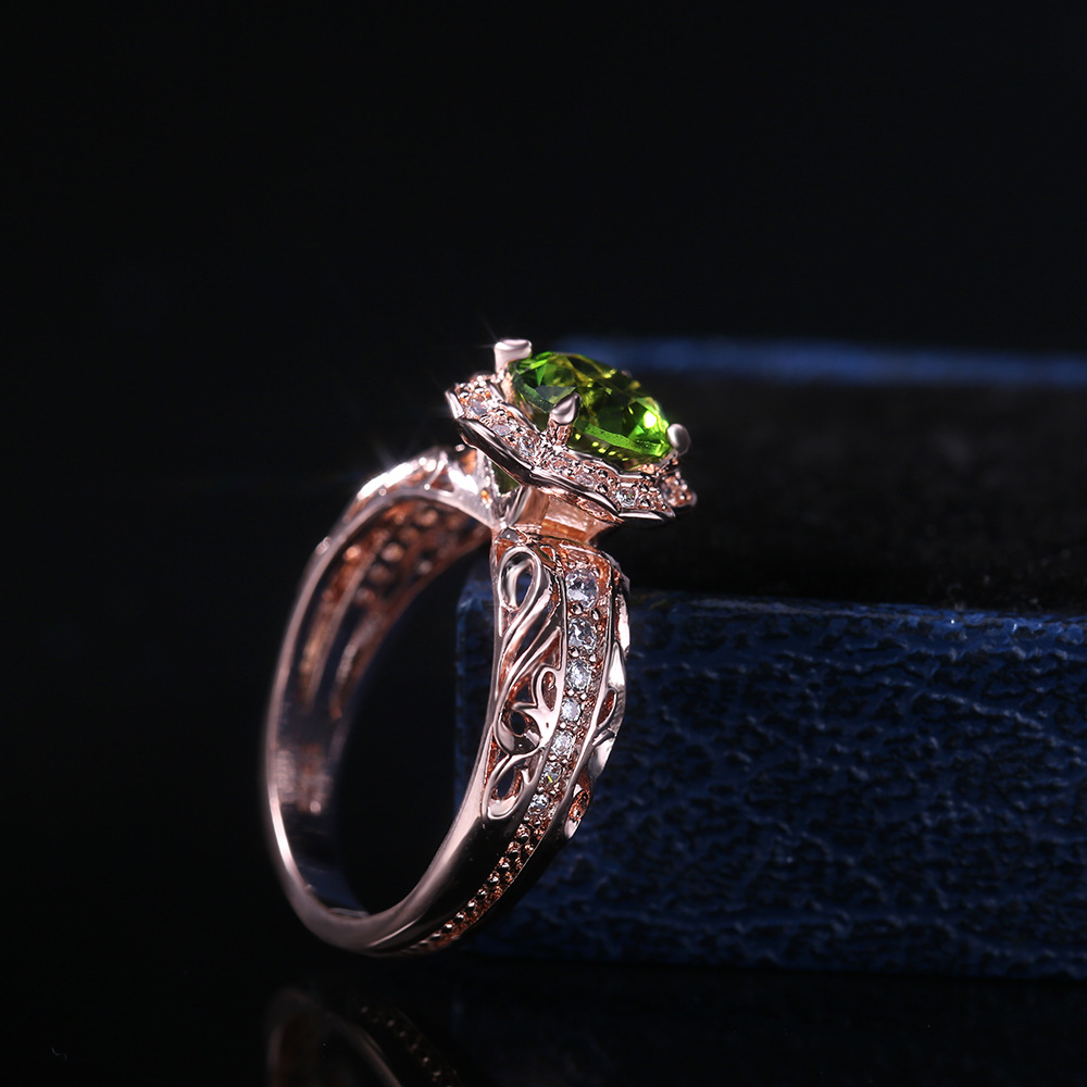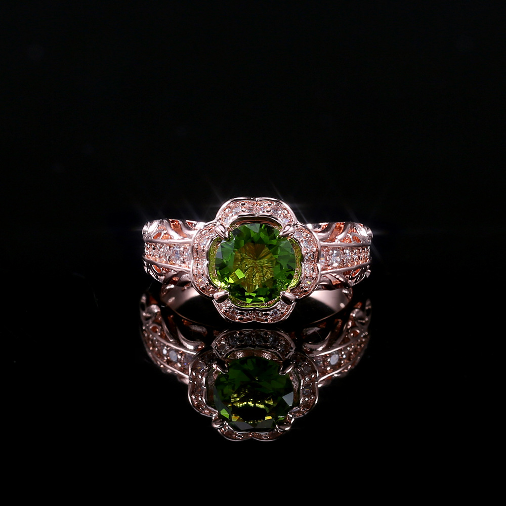 New flower ring hot selling copper plated rose gold with green zircon ring factory direct sales