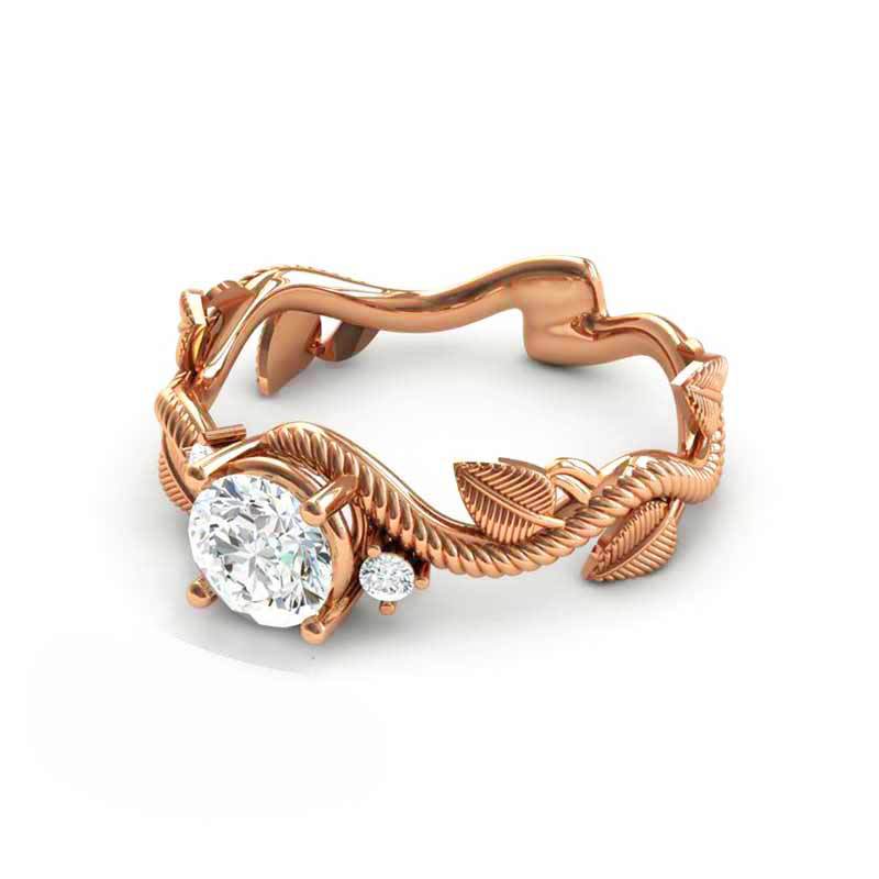New flower vine leaf-shaped diamond zircon women's ring copper plated rose gold flower pinky ring jewelry