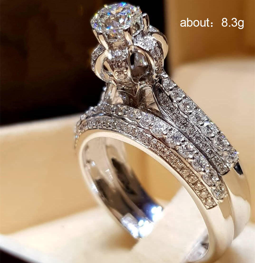 Micro-inlaid celebrity style classic all-match popular ring six-claw zircon wedding ring European and American style light luxury ring