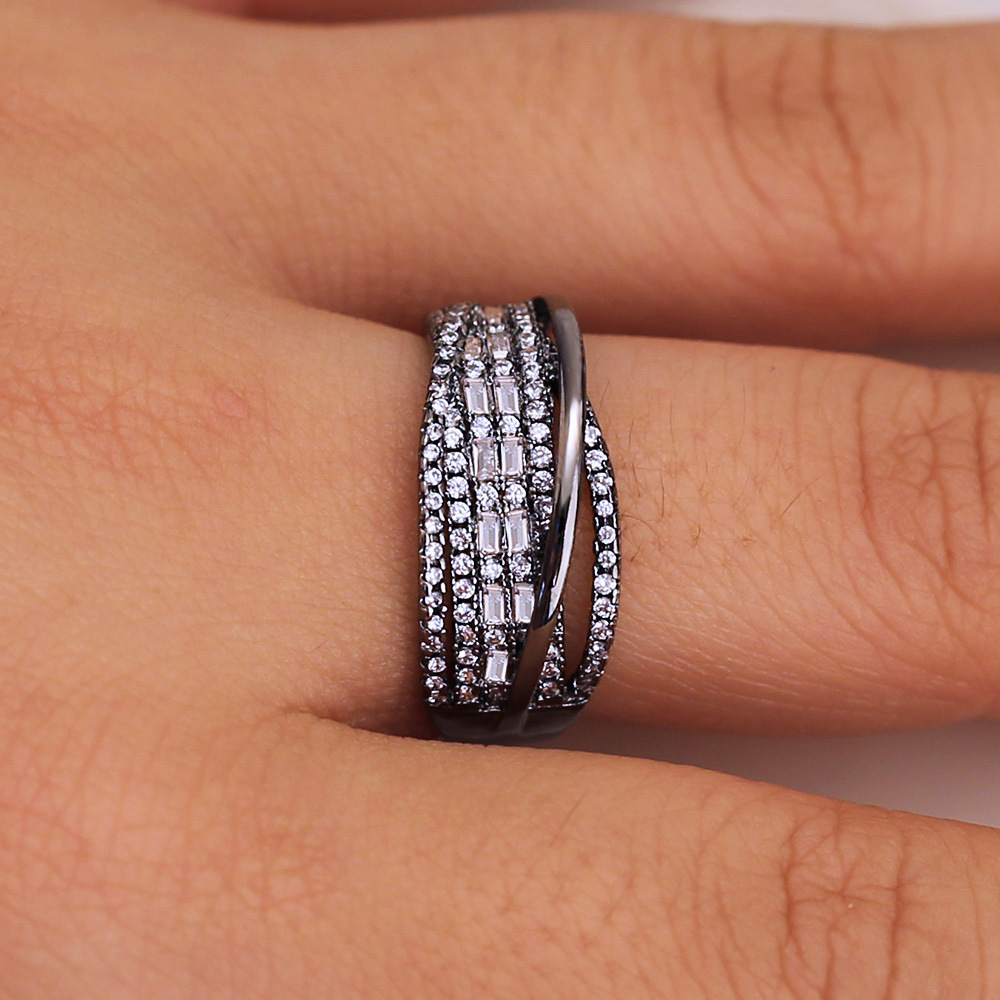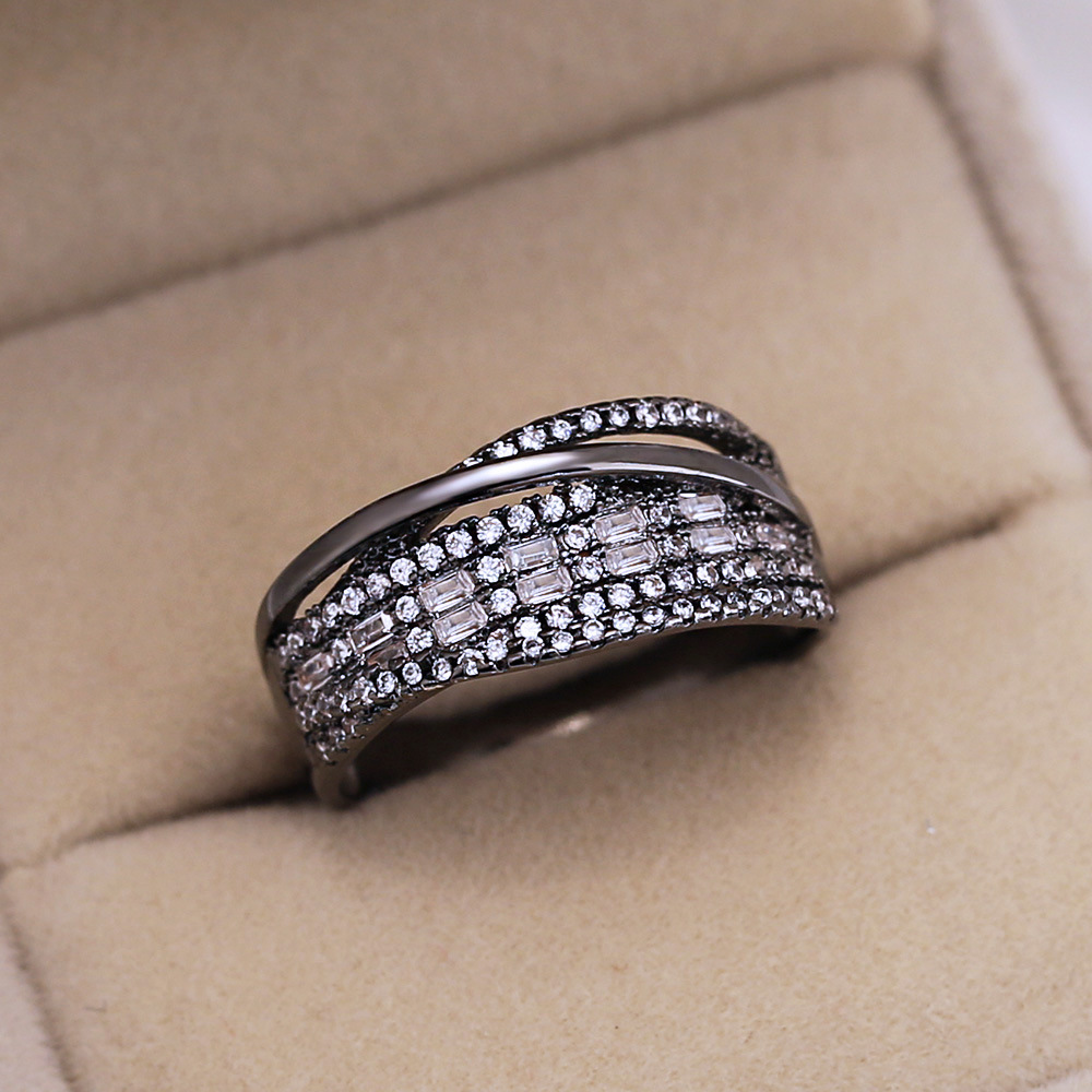 New geometric line interwoven ring full of diamonds micro-inlaid zircon gun black ring supply