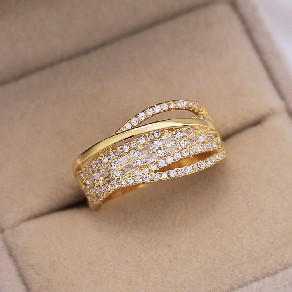 New zircon ring hollow cross four claws fashion design proposal wedding ring birthday gift ring