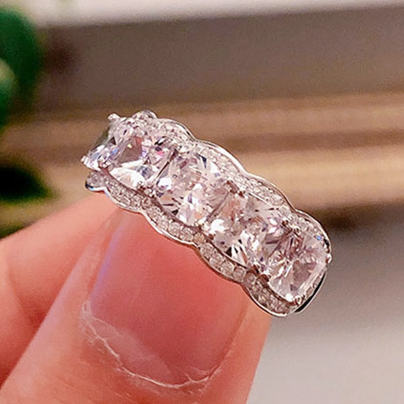 New geometric shiny inlaid zircon ring female fashion bride matching ring light luxury high-end jewelry