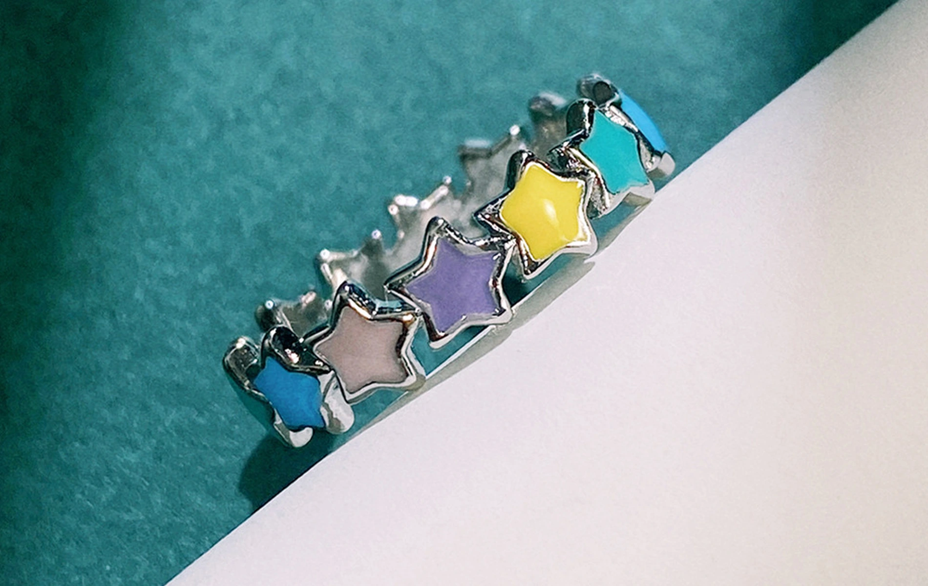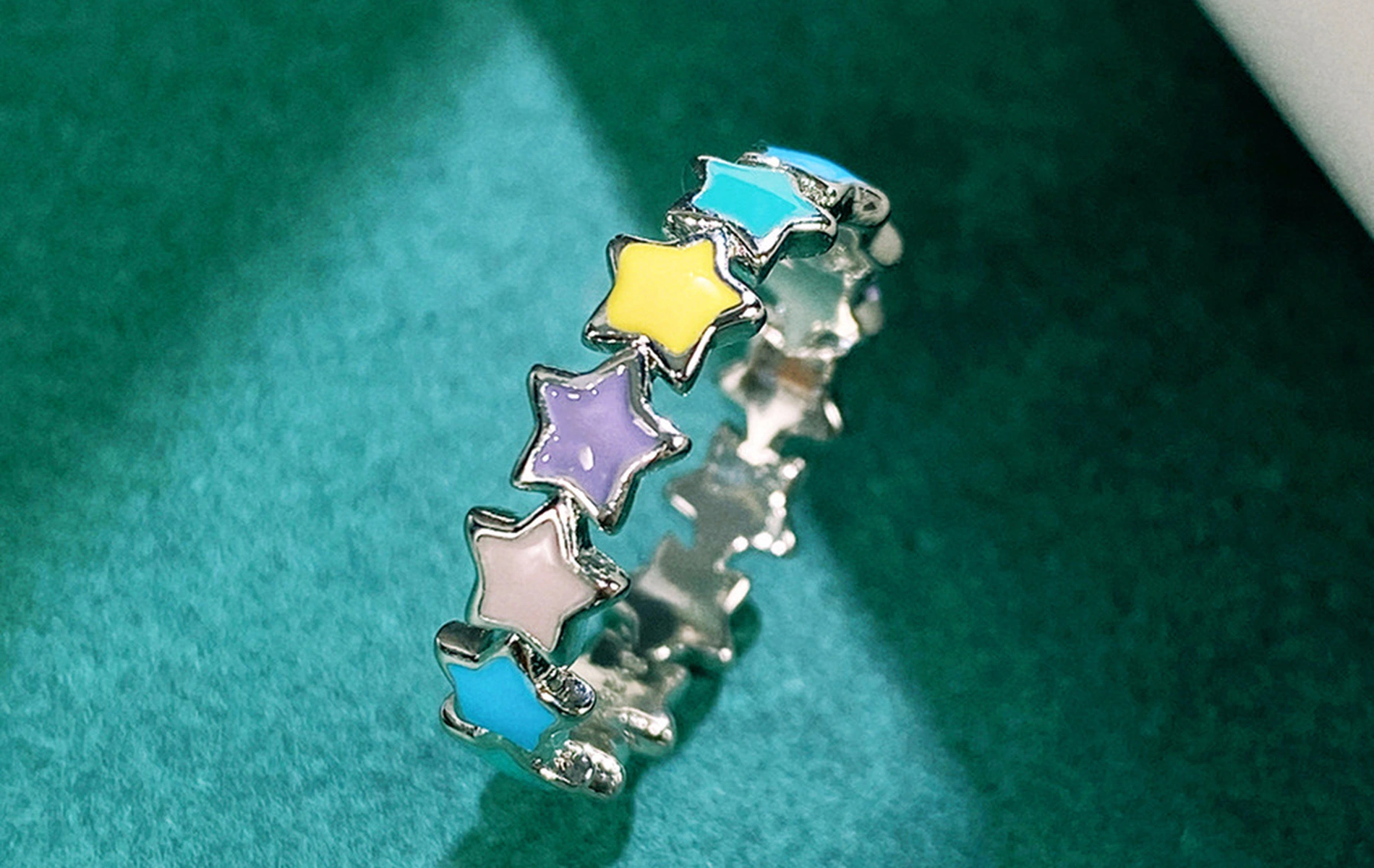 New hand jewelry colorful oil drop star ring exquisite cute full circle five-pointed star women's ring