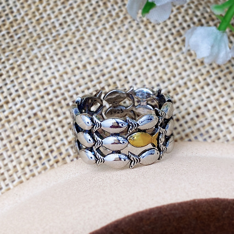 New hand jewelry creative two-color plated fish ring a goldfish swimming upstream inspirational ring