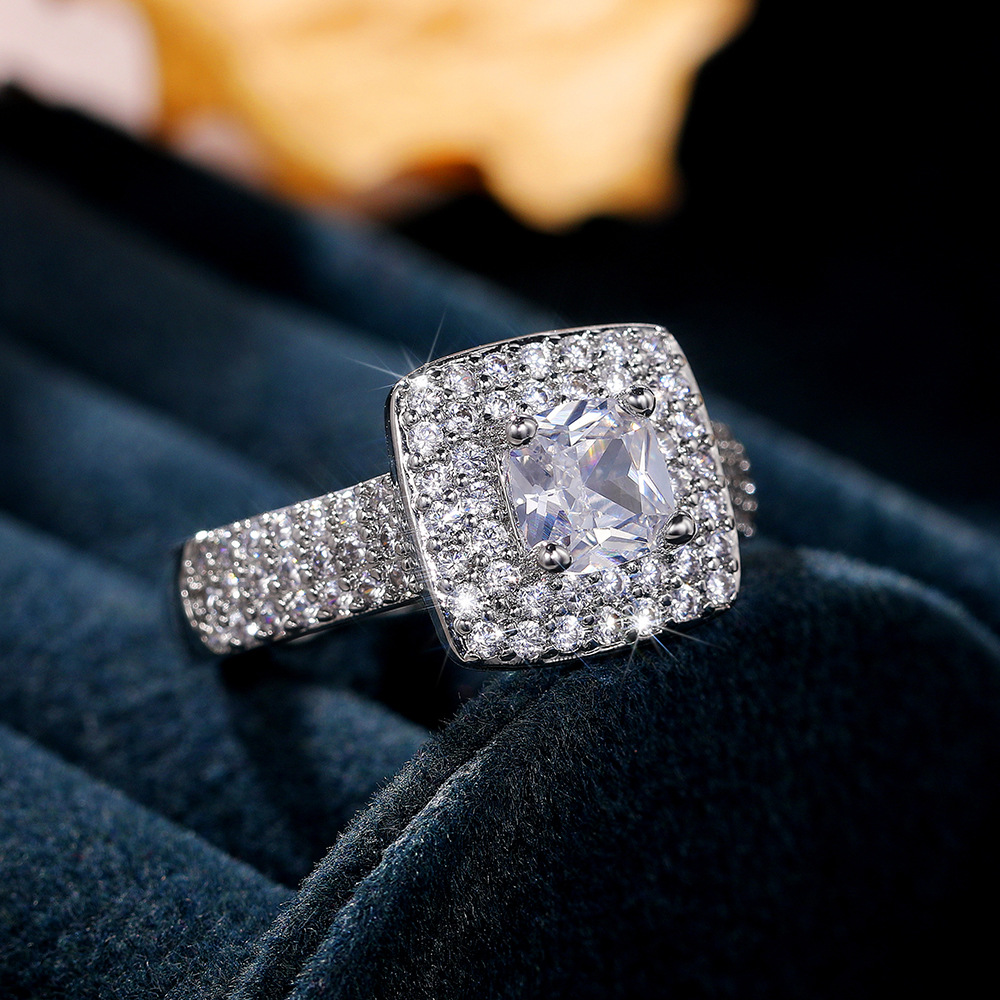 New hand jewelry full diamond micro-inlaid princess square diamond zircon ring European and American luxury engagement ring