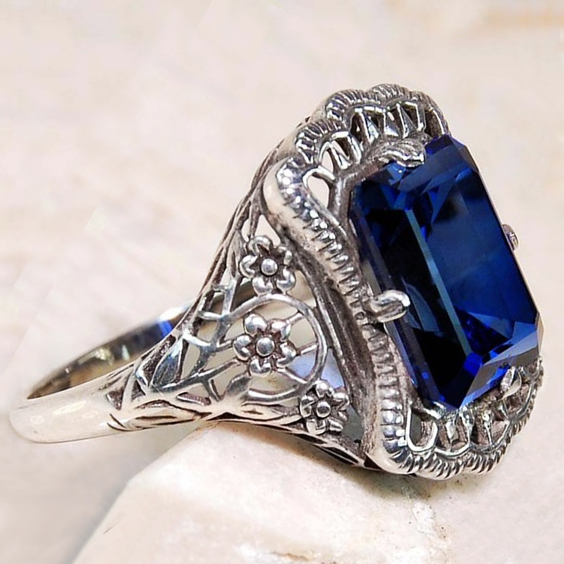 New hand jewelry palace style hollow royal blue zircon ring retro boutique ring wholesale