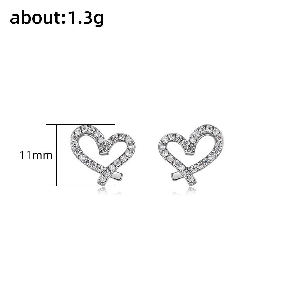 New heart-shaped earrings for women, fashionable and sweet, full diamond zircon love earrings