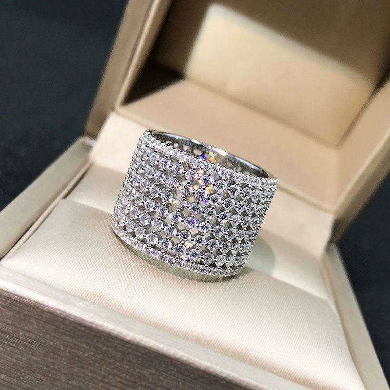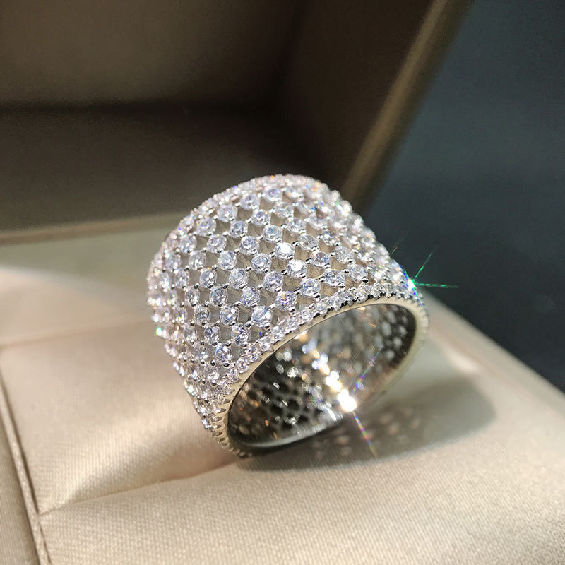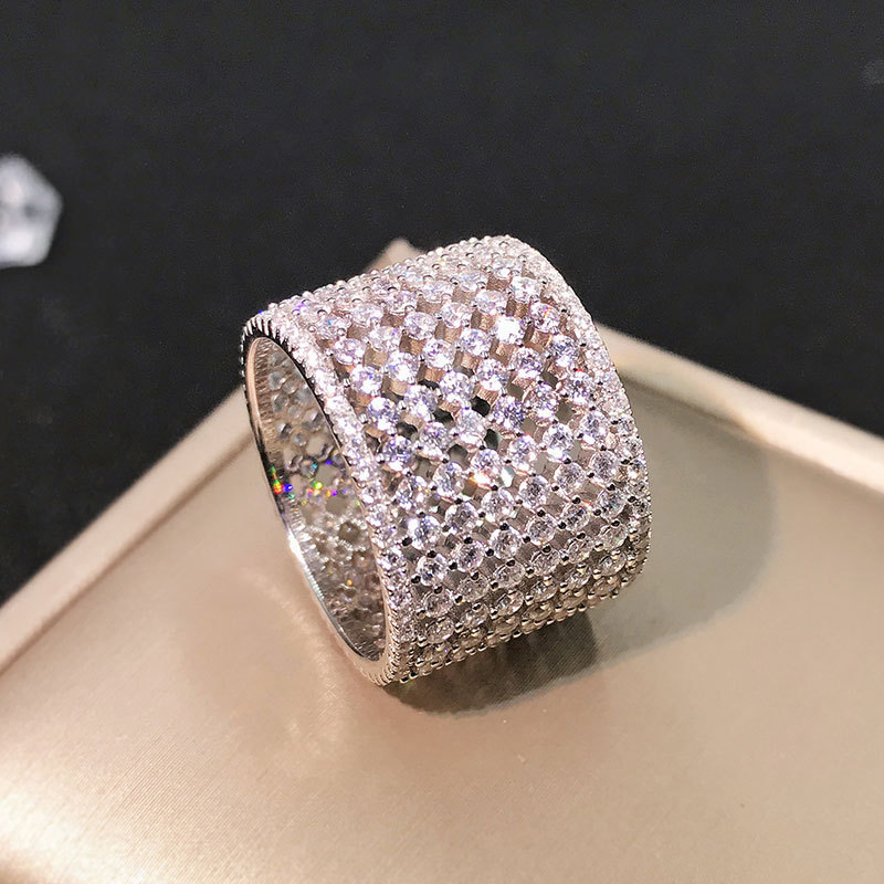 New high-end copper ring inlaid with zircon for women, trendy hollow ring, fashion jewelry manufacturer
