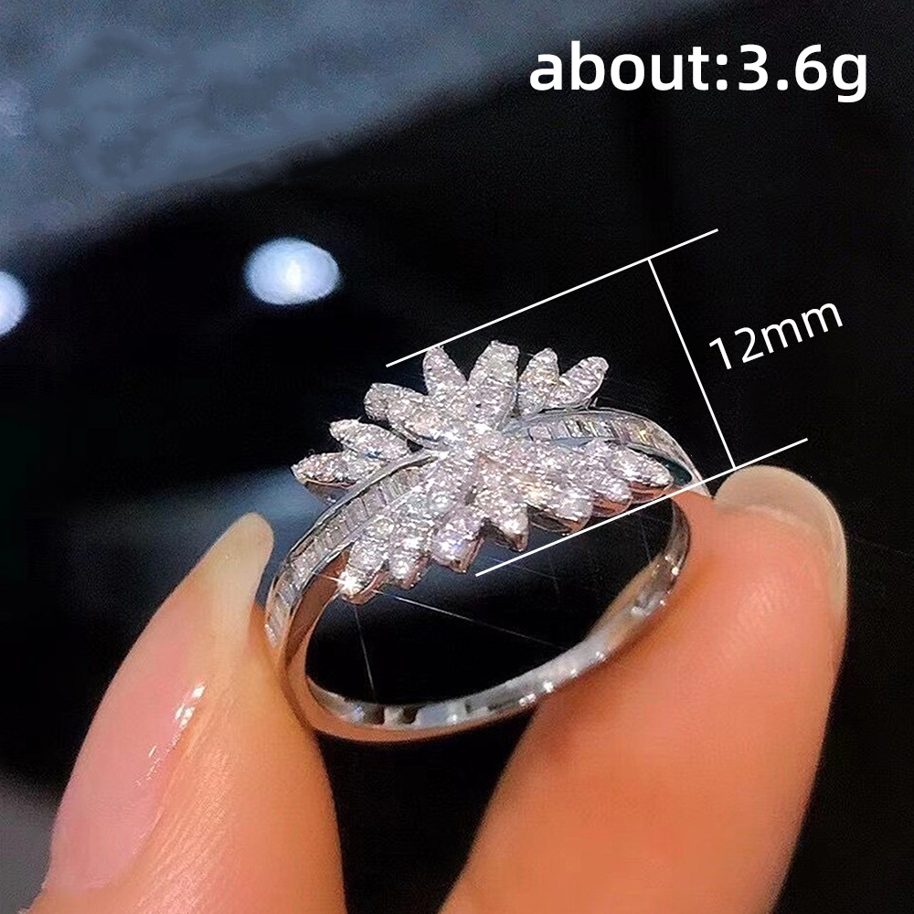 New high-end crystal flower ring for women, full of diamonds, temperament, personality, simple, Korean Internet celebrity index finger ring
