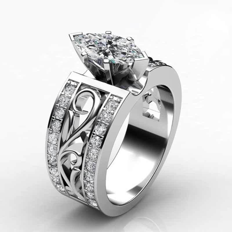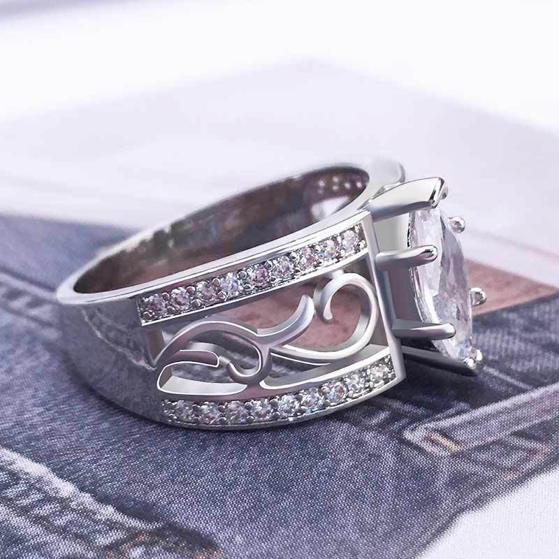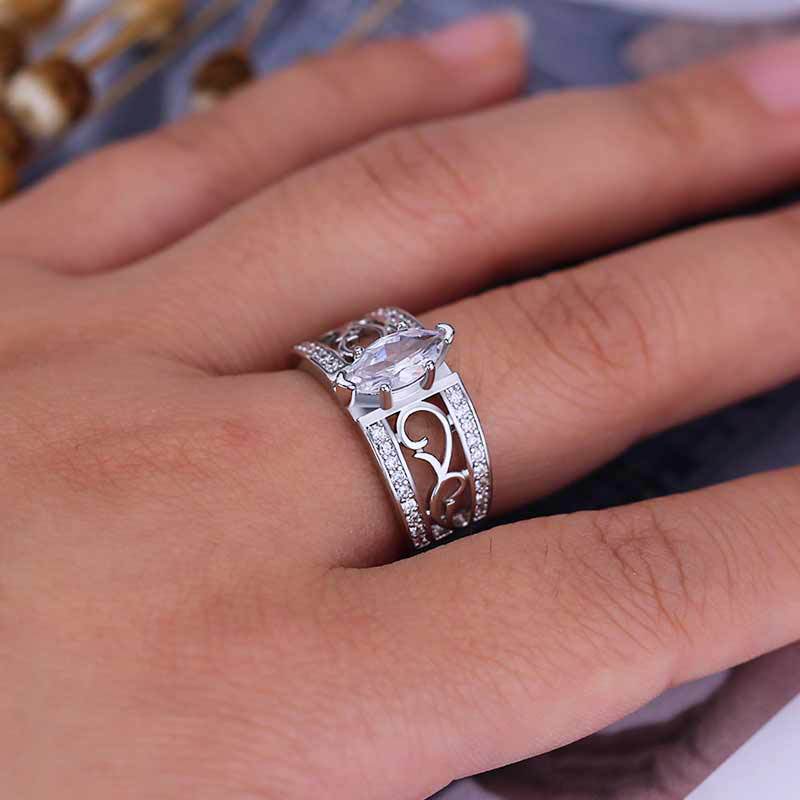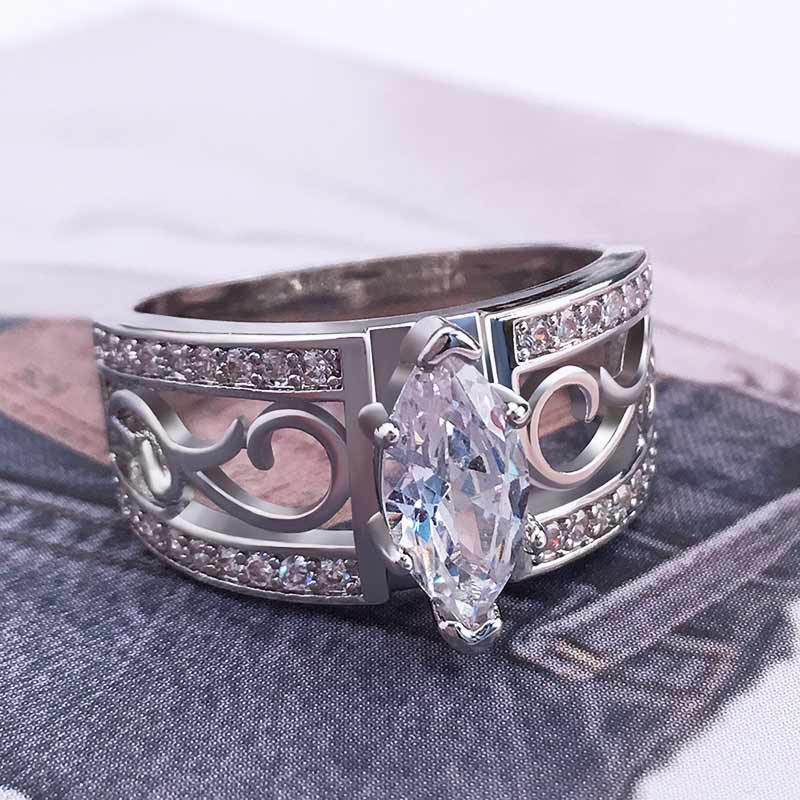 New hollow openwork diamond-studded special-shaped diamond horse eye ring European and American creative engagement gift ring