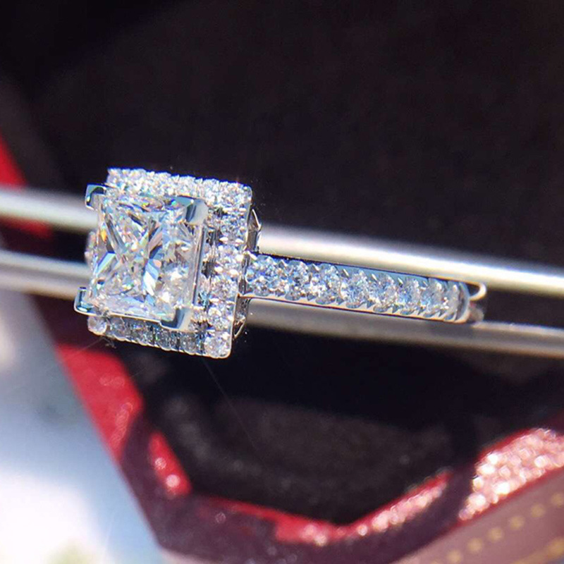 Hot selling new princess square ring European and American hot style inlaid zircon women's jewelry engagement proposal ring