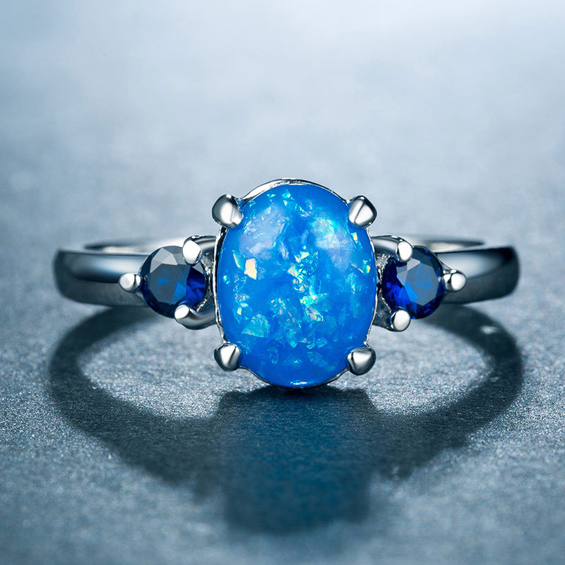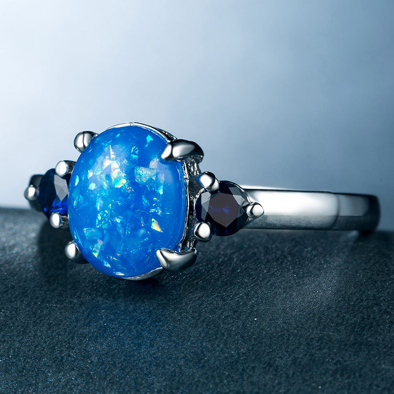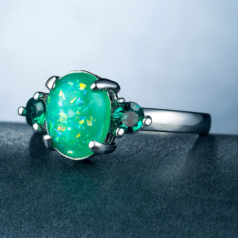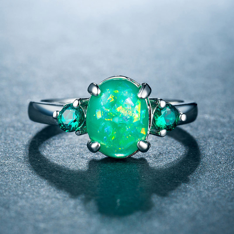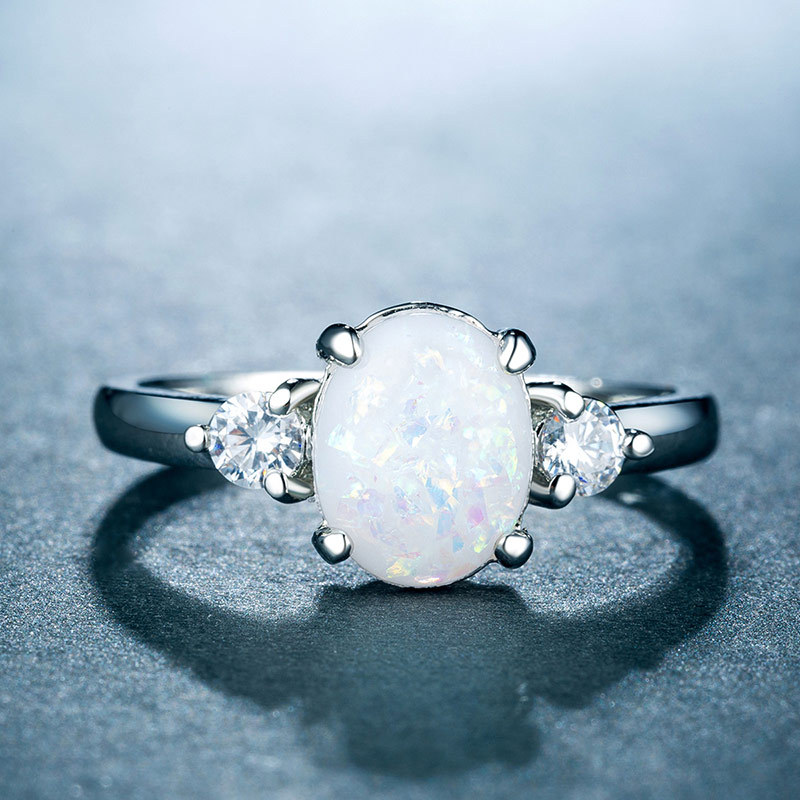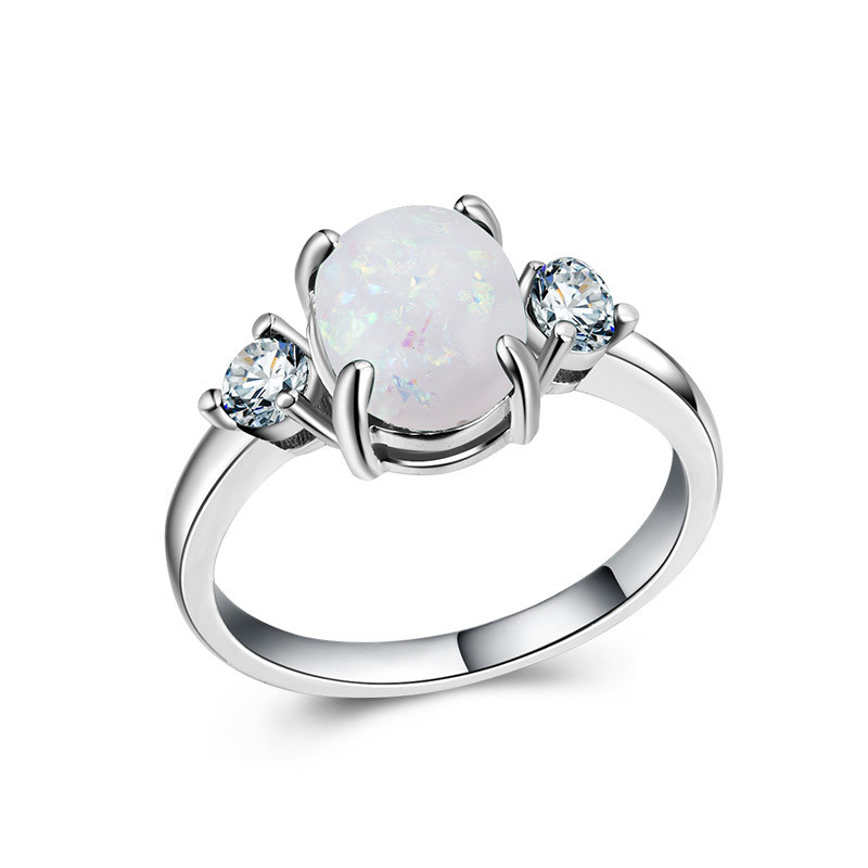 New hot-selling copper jewelry, fashionable and simple oval opal women's ring, micro-inlaid zircon, factory direct sales