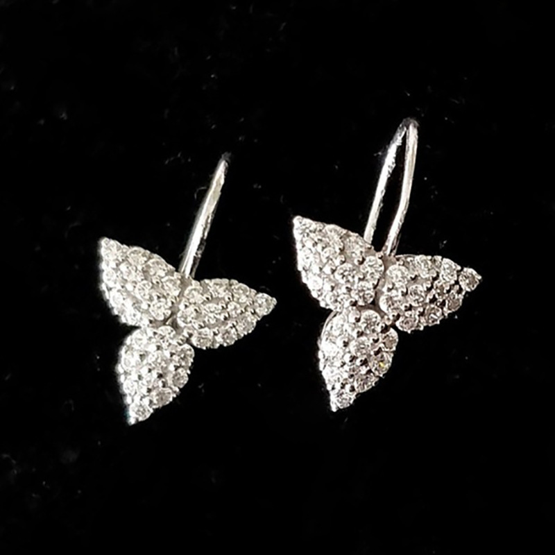 New hot selling ear clips personalized micro-inlaid zircon three-leaf ear hooks for women Japanese and Korean Internet celebrities same style earrings wholesale