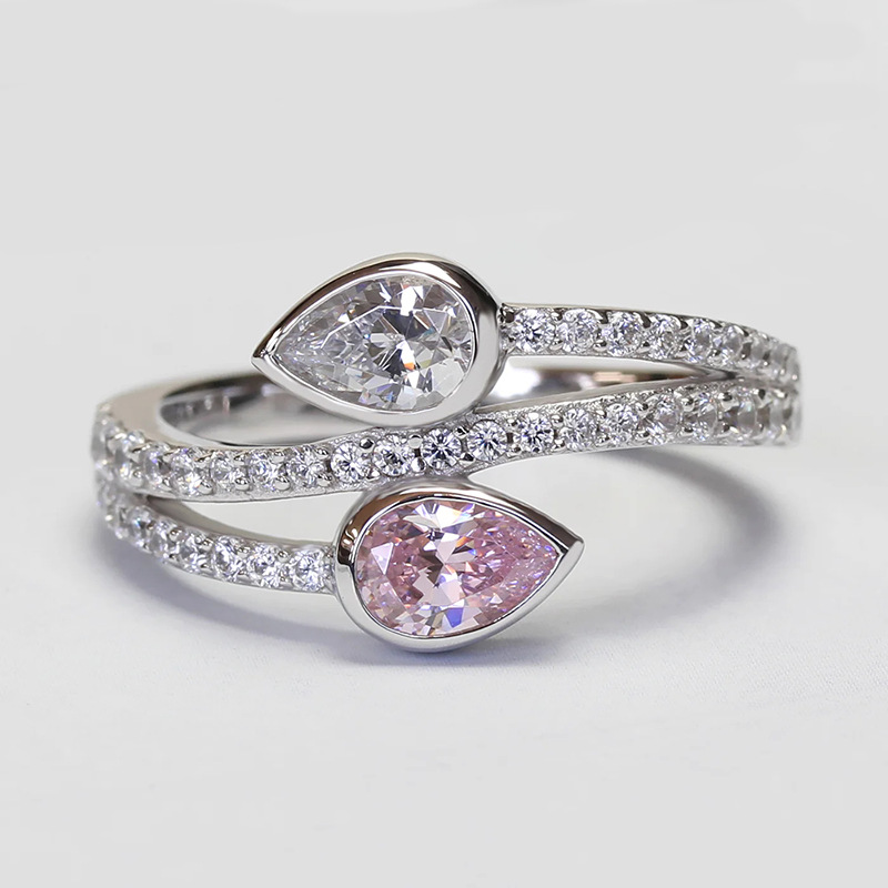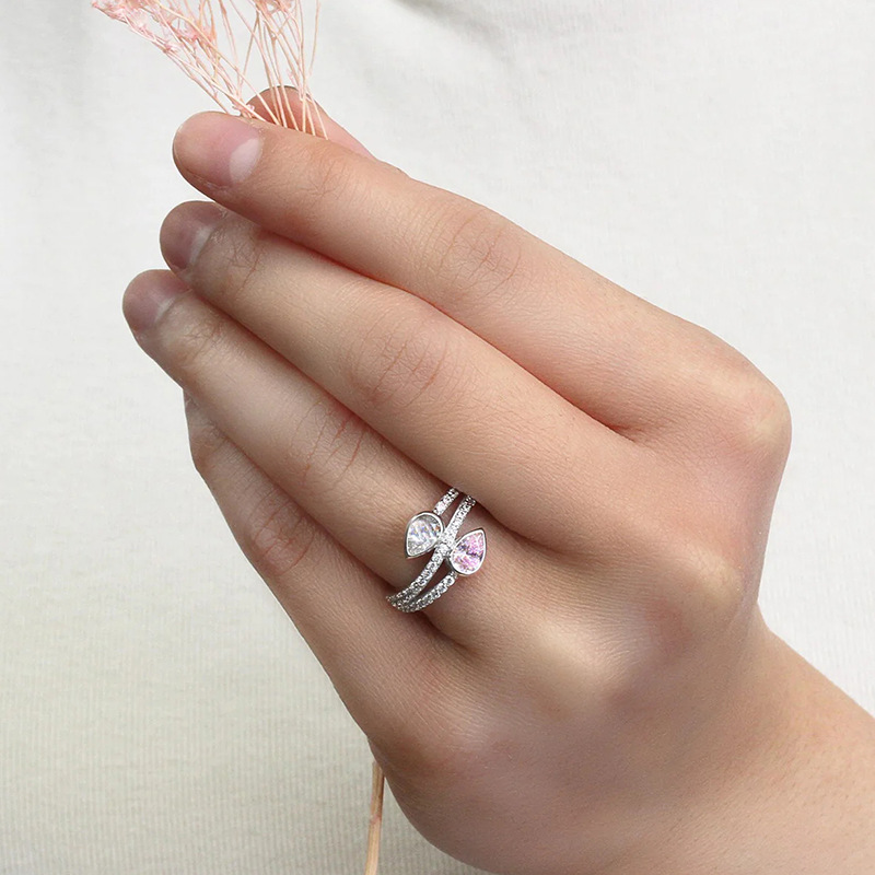 Classic four-claw imitation zircon micro-inlaid ring women's double row two-color twist arm ring engagement wedding ring women