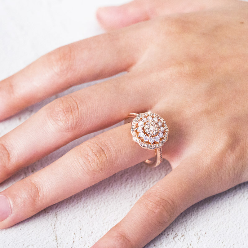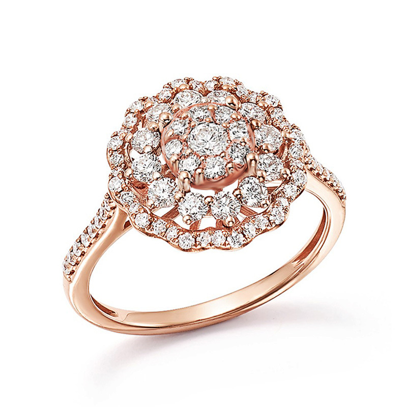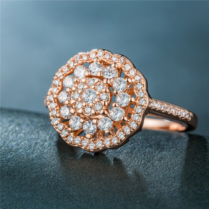 New hot selling European and American hollow flower ring female luxury full diamond zircon cocktail ring