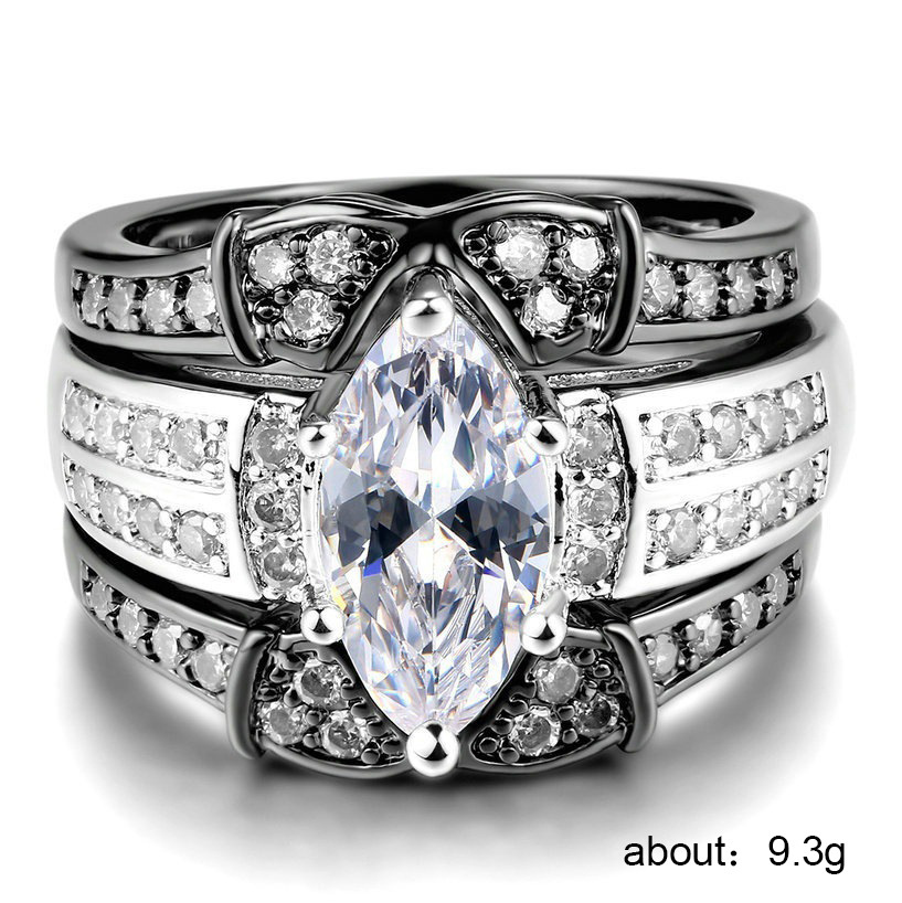 New hot selling European and American luxury three-layer ring women's high-end electroplated platinum engagement ring wholesale