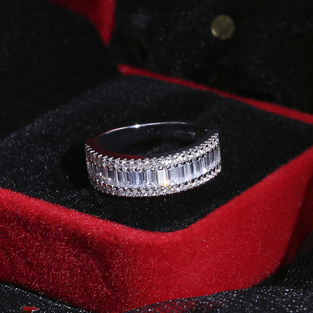 New hot selling European and American popular T-shaped square diamond zircon ring high-end full diamond couple ring