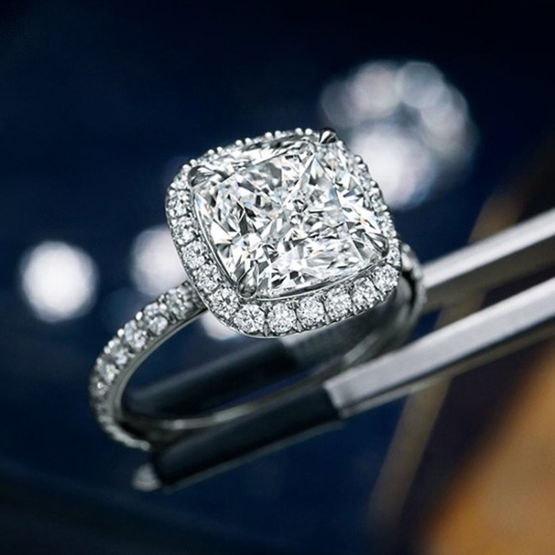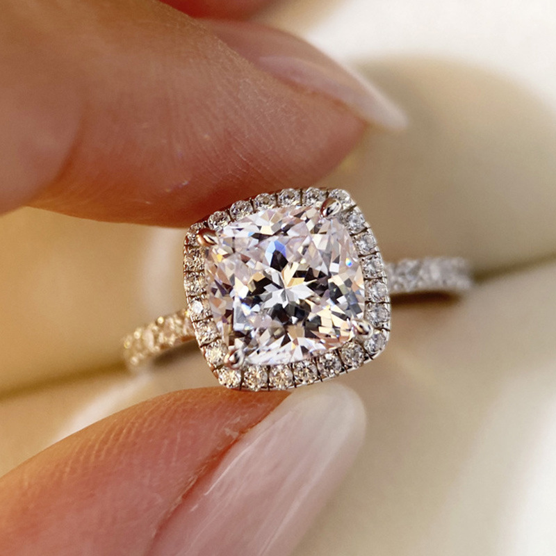 Hot selling new princess square ring European and American hot style inlaid zircon women's jewelry engagement proposal ring