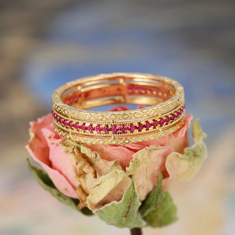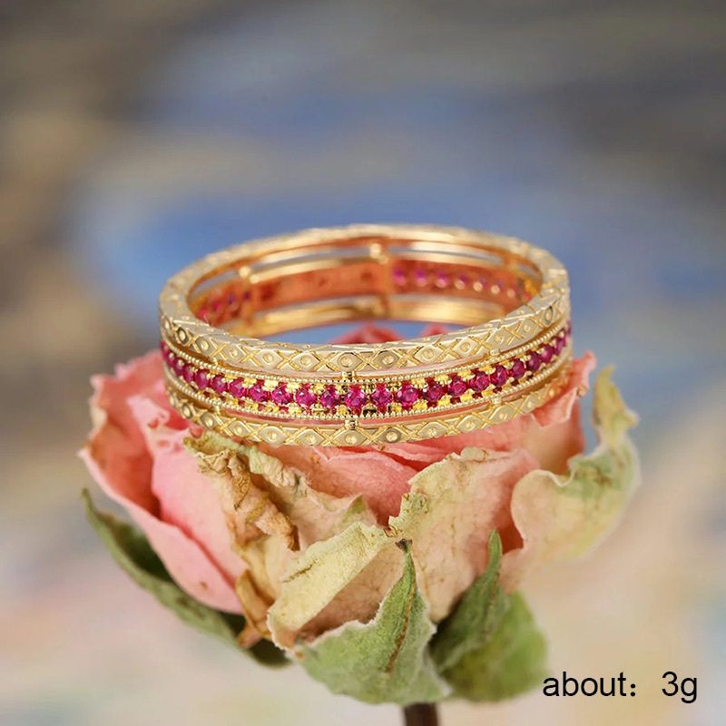 New hot selling fashion exquisite hollow micro inlaid red gemstone ring travel commemorative ring
