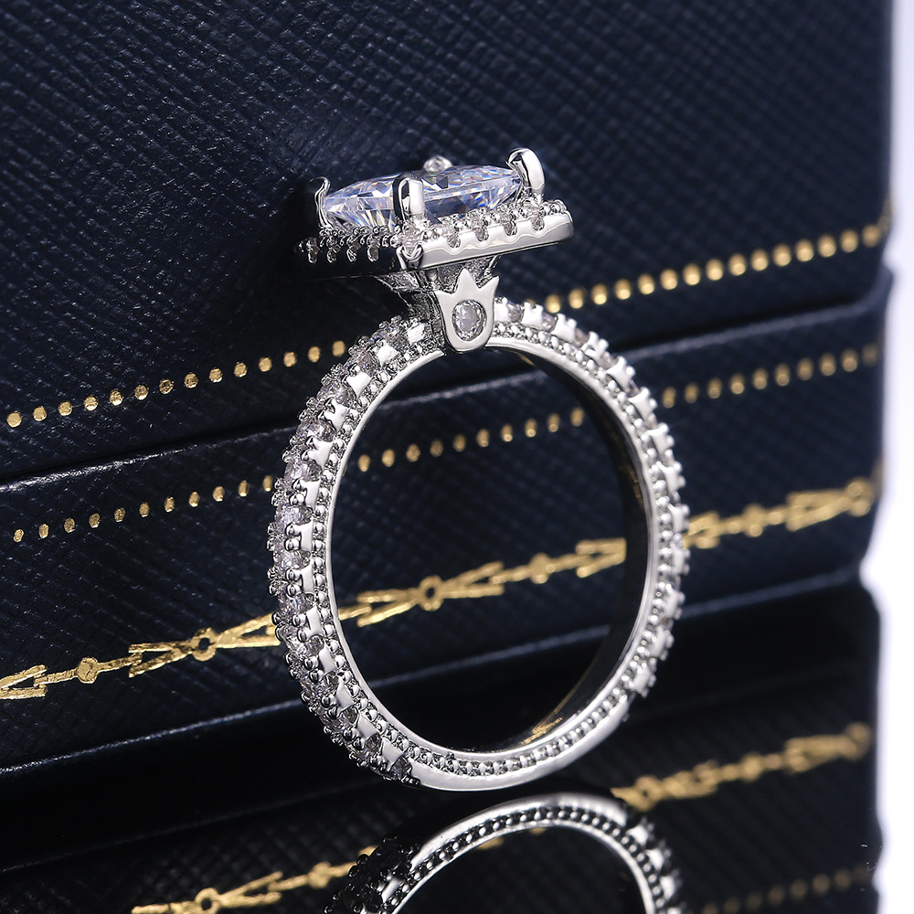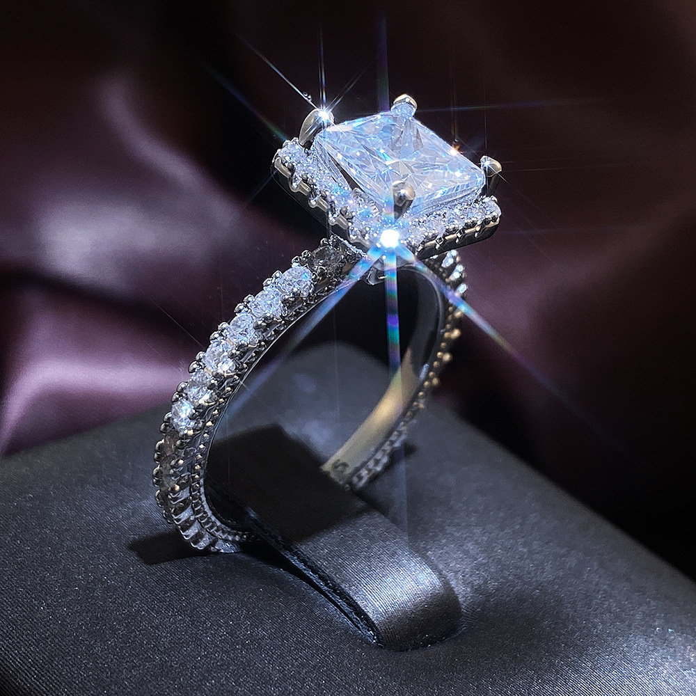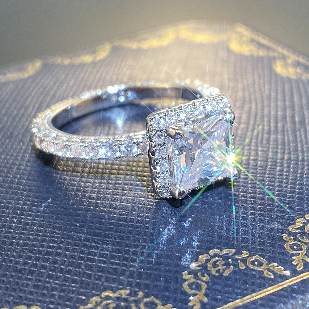 New hot selling fashionable and atmospheric sparkling diamond square engagement ring European and American diamond ring wholesale