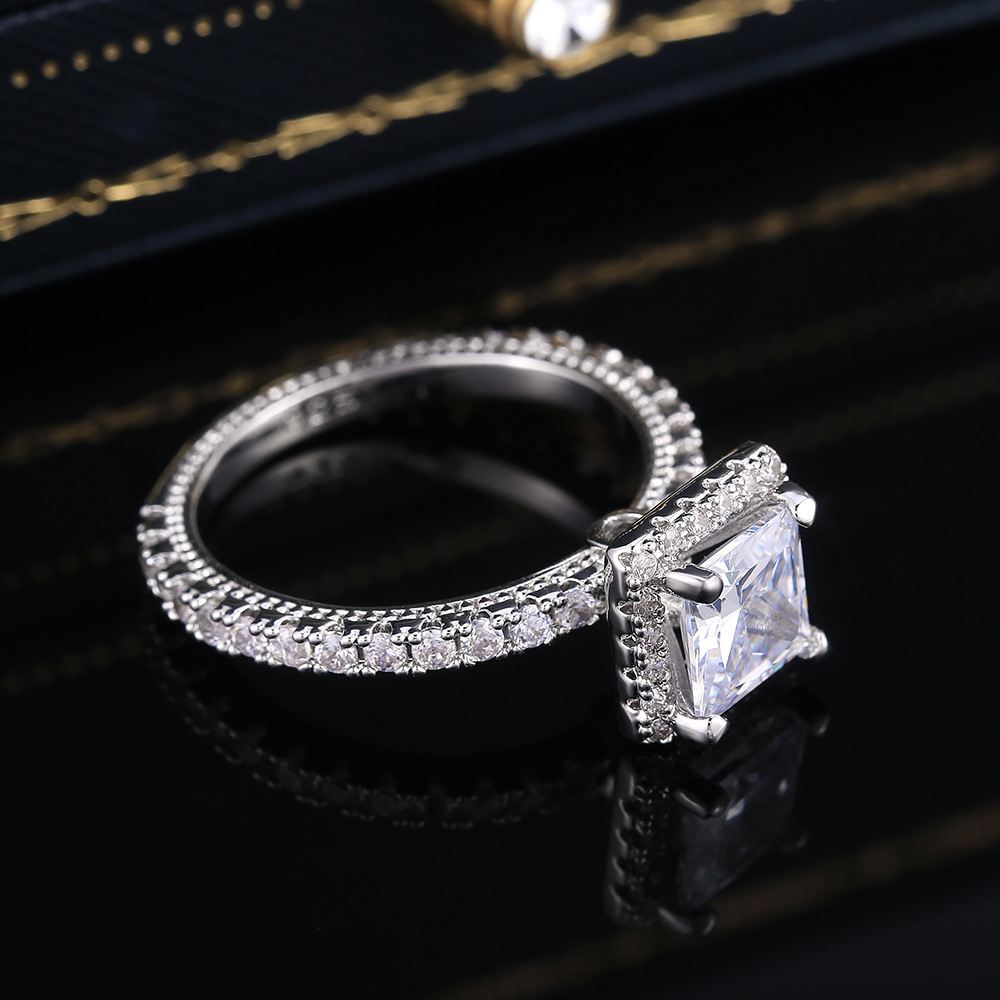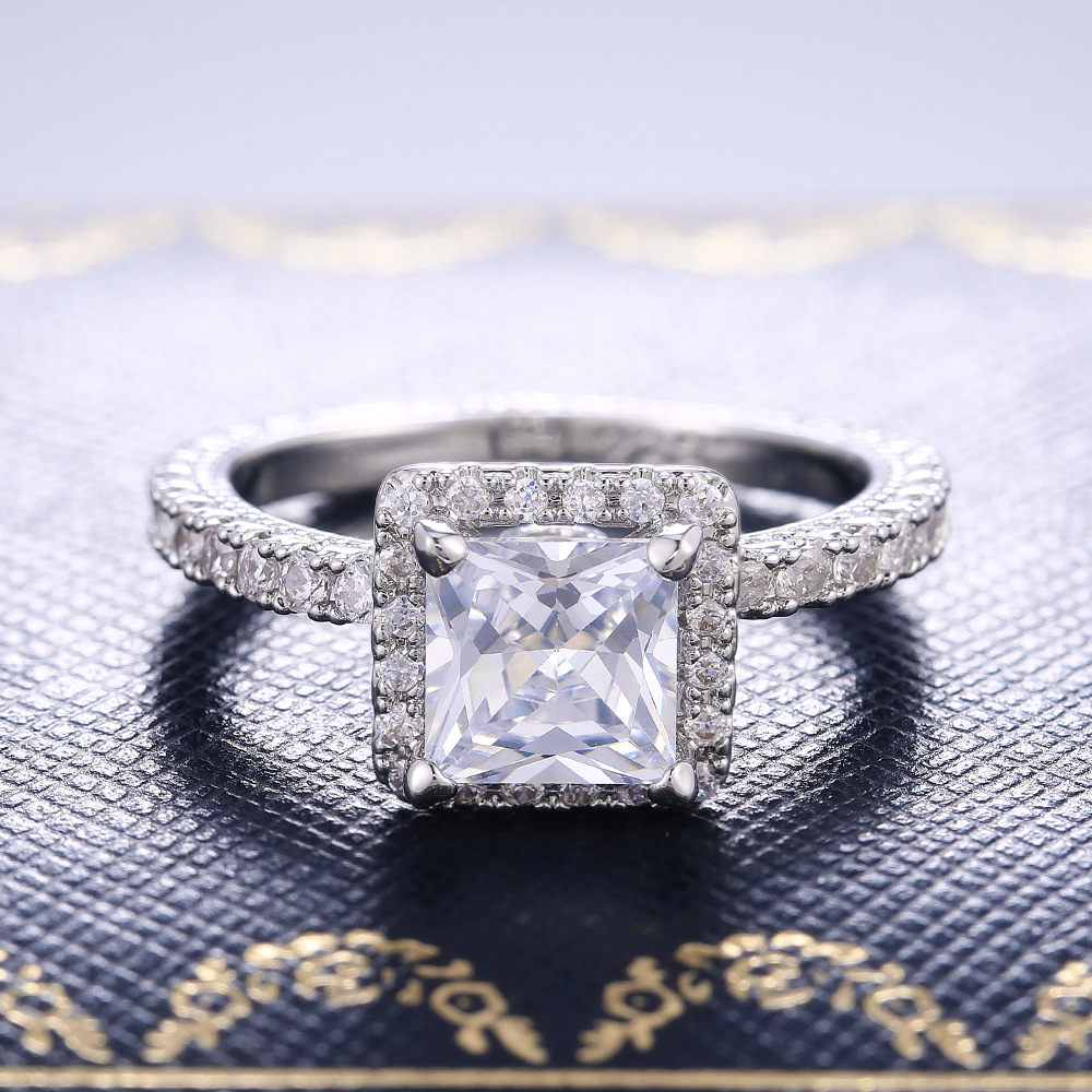 Hot selling new princess square ring European and American hot style inlaid zircon women's jewelry engagement proposal ring