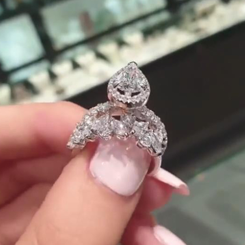 New hot selling luxury high-end teardrop pear-shaped zircon ring set women's wedding jewelry wholesale