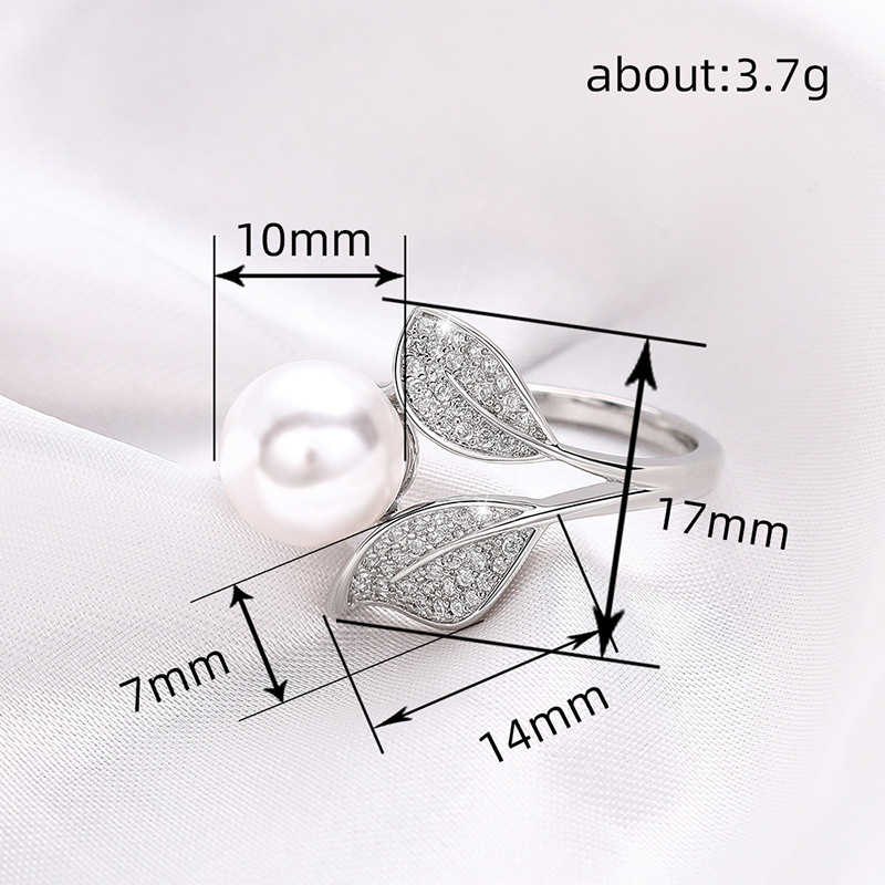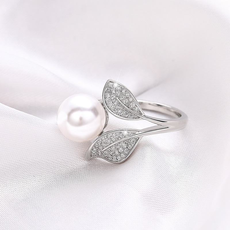 New hot selling ring exhibition style leaf imitation pearl ring fresh and fashionable design female ring
