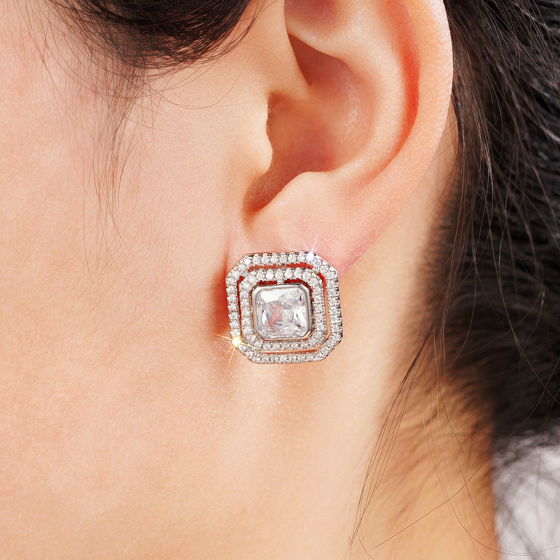 New hot selling simple earrings hollow geometric square design shiny dress accessories earrings