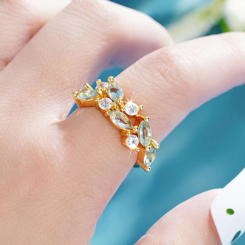 European and American luxury design ring fashionable temperament horse eye zircon ring multi-layer hollow design index finger ring