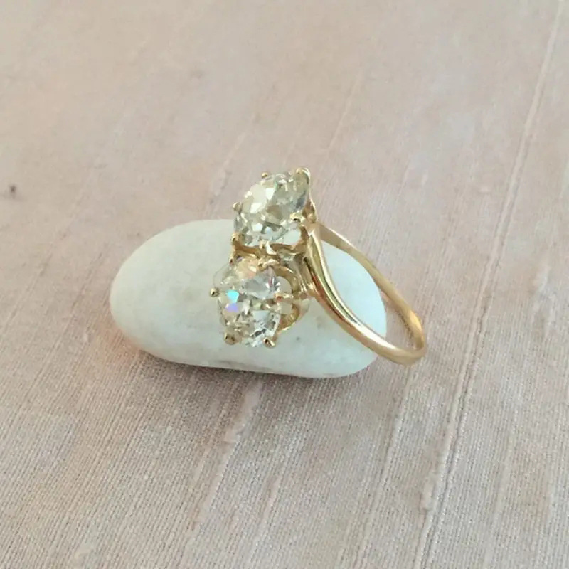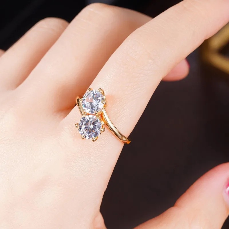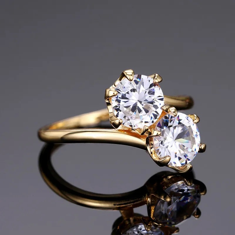 Classic four-claw imitation zircon micro-inlaid ring women's double row two-color twist arm ring engagement wedding ring women
