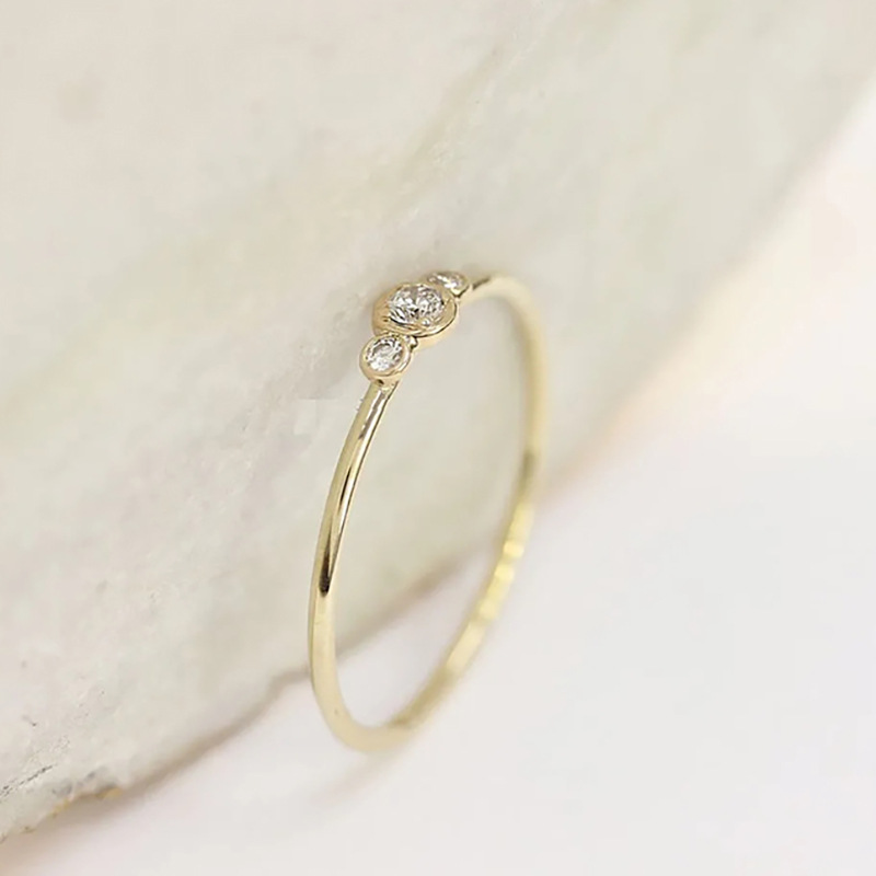 New Japanese and Korean jewelry fashion light luxury exquisite micro-inlaid three diamond zircon wedding ring simple style pinky ring
