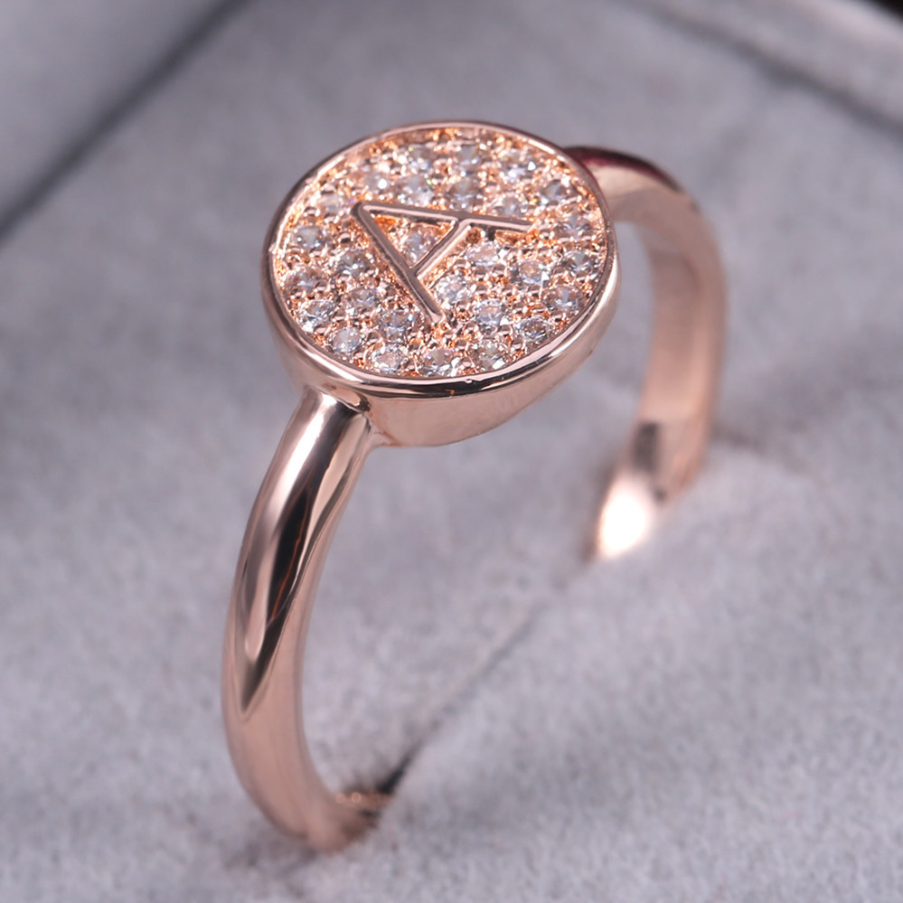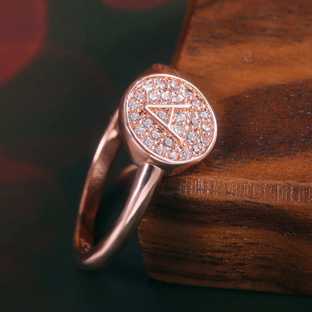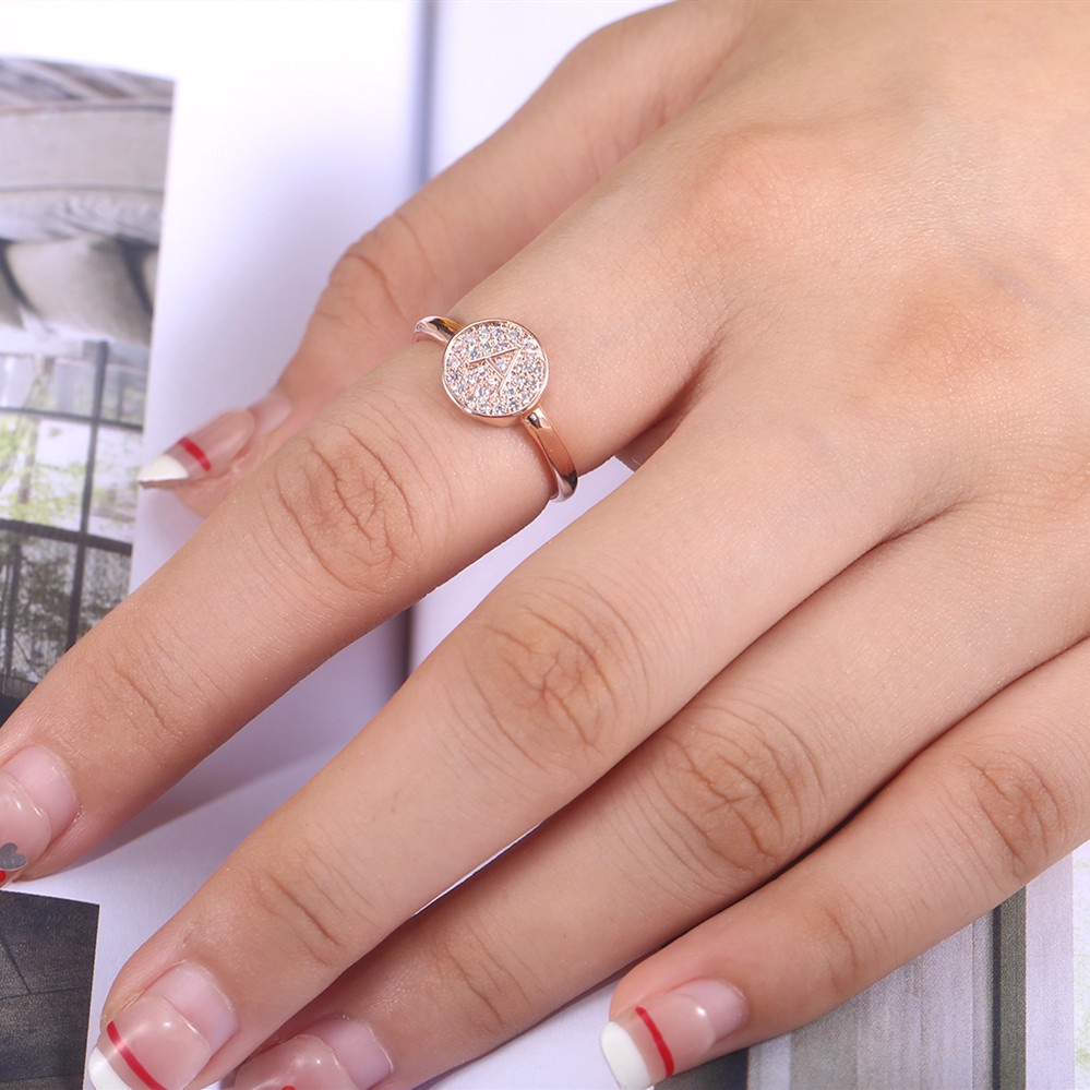 New Japanese and Korean style hot selling simple small fresh letter A rose gold micro inlaid zircon ring female index finger ring