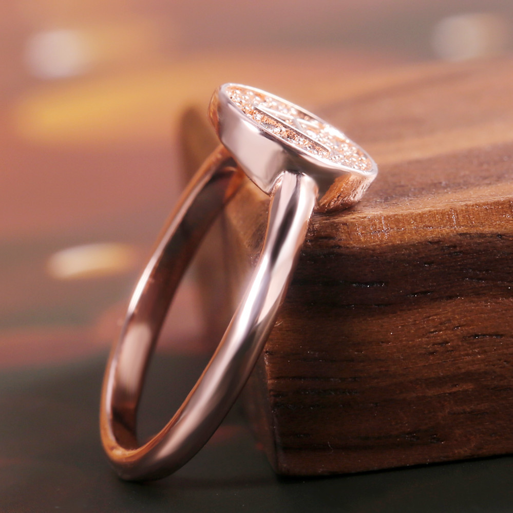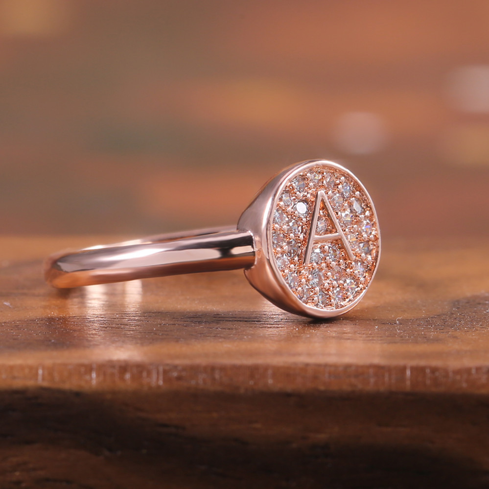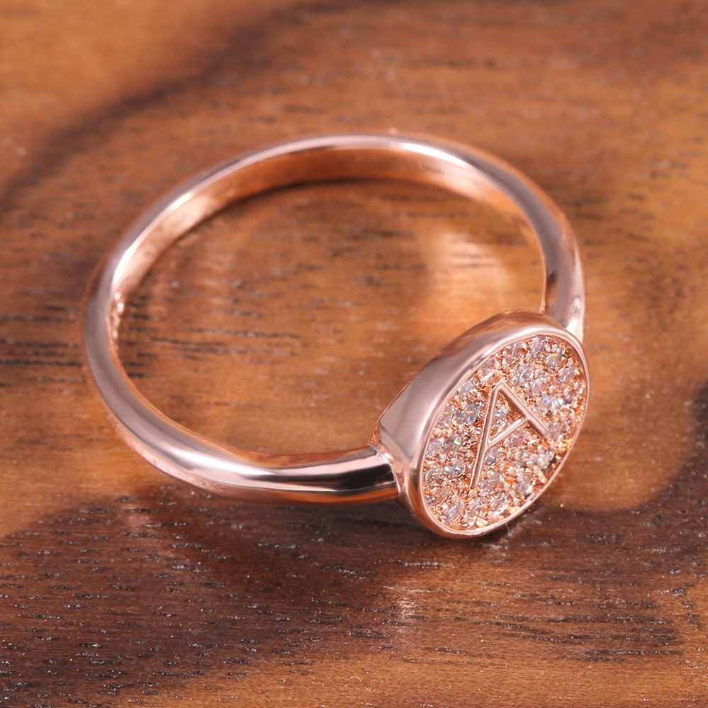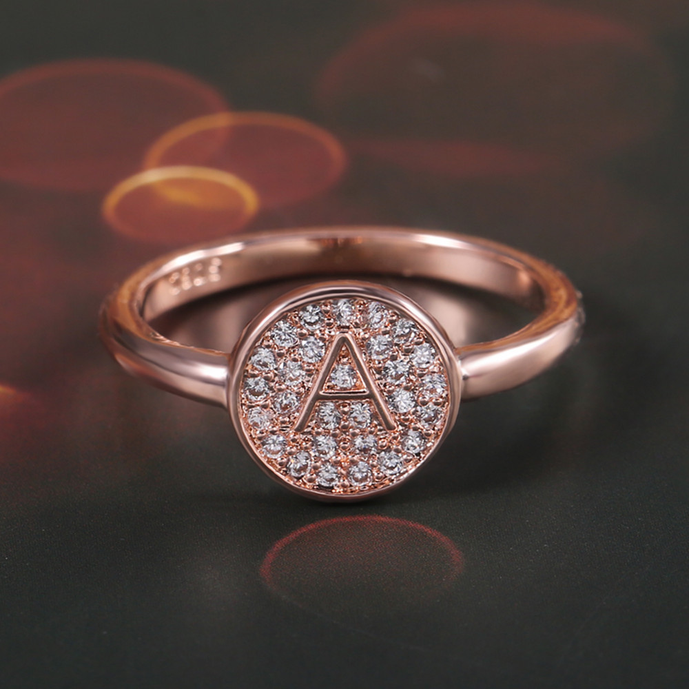 New Japanese and Korean style hot selling simple small fresh letter A rose gold micro inlaid zircon ring female index finger ring