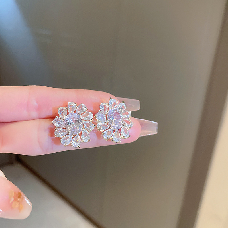 New Japanese sunflower full diamond earrings, high-end and full-feeling lady earrings, flower series flower model