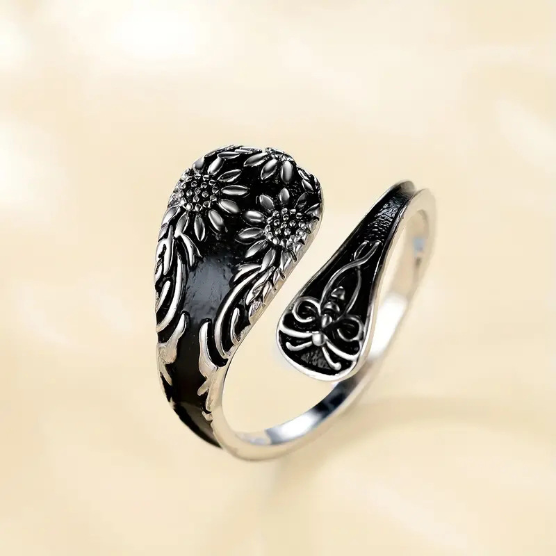 Classic retro engraved auspicious flower ring classical wide version Miao ring Yunnan ethnic style men and women's jewelry