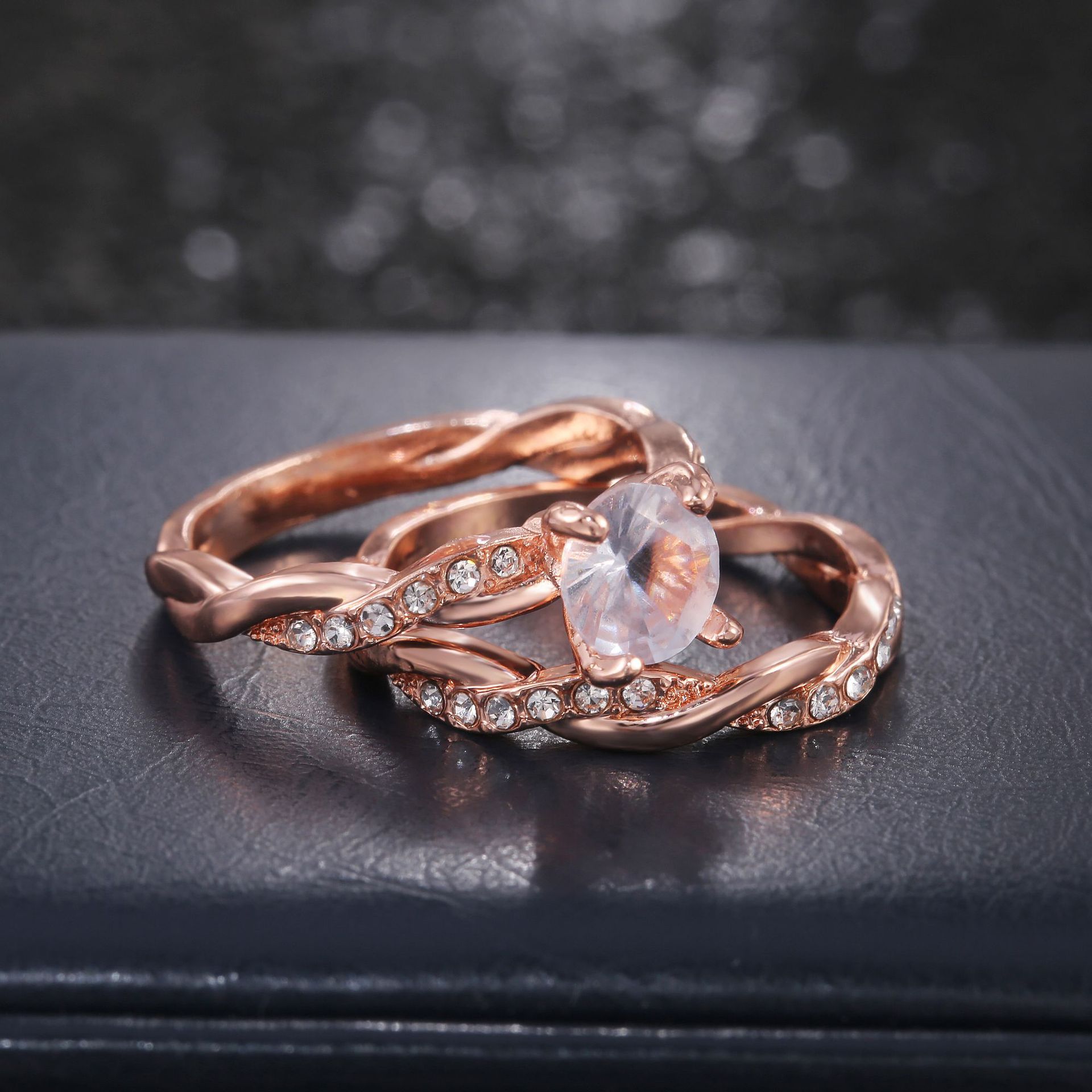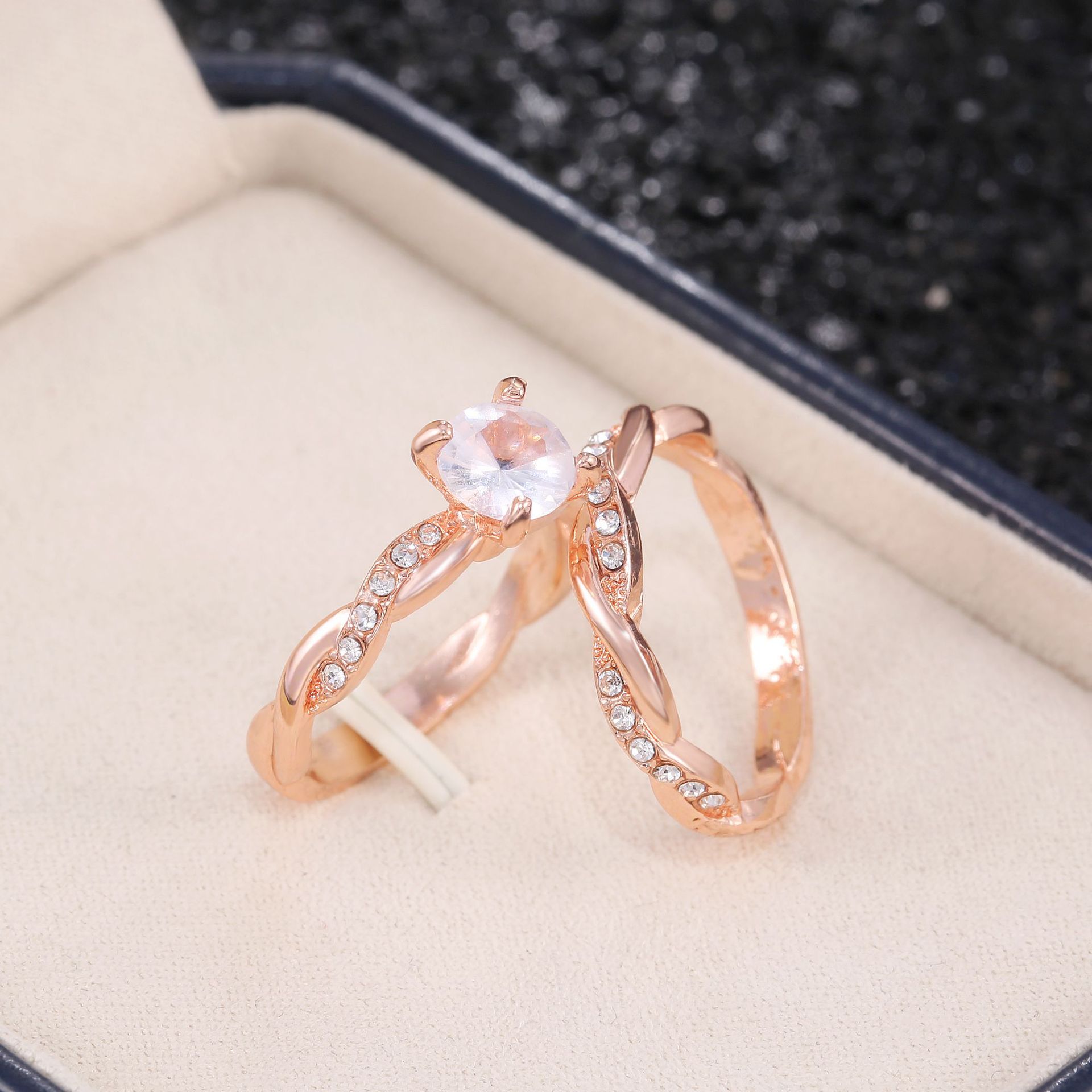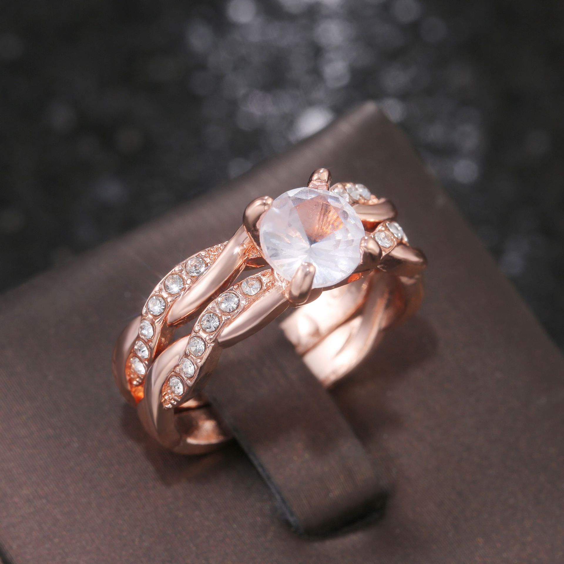 New jewelry European and American fashion zircon couple ring rose gold copper romantic couple ring
