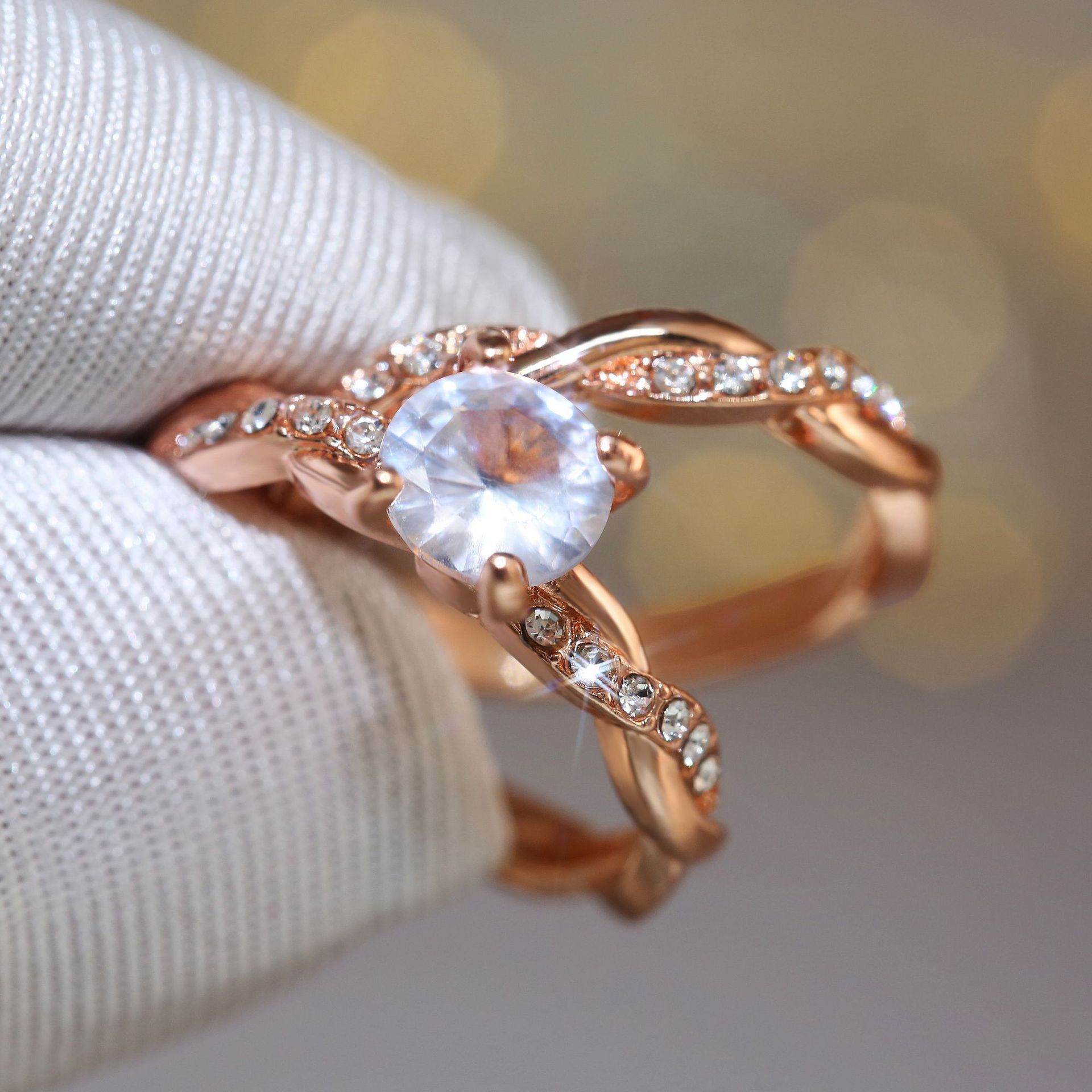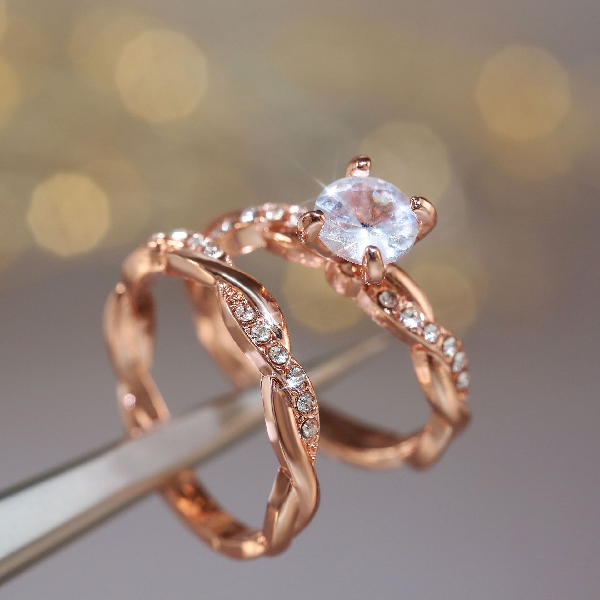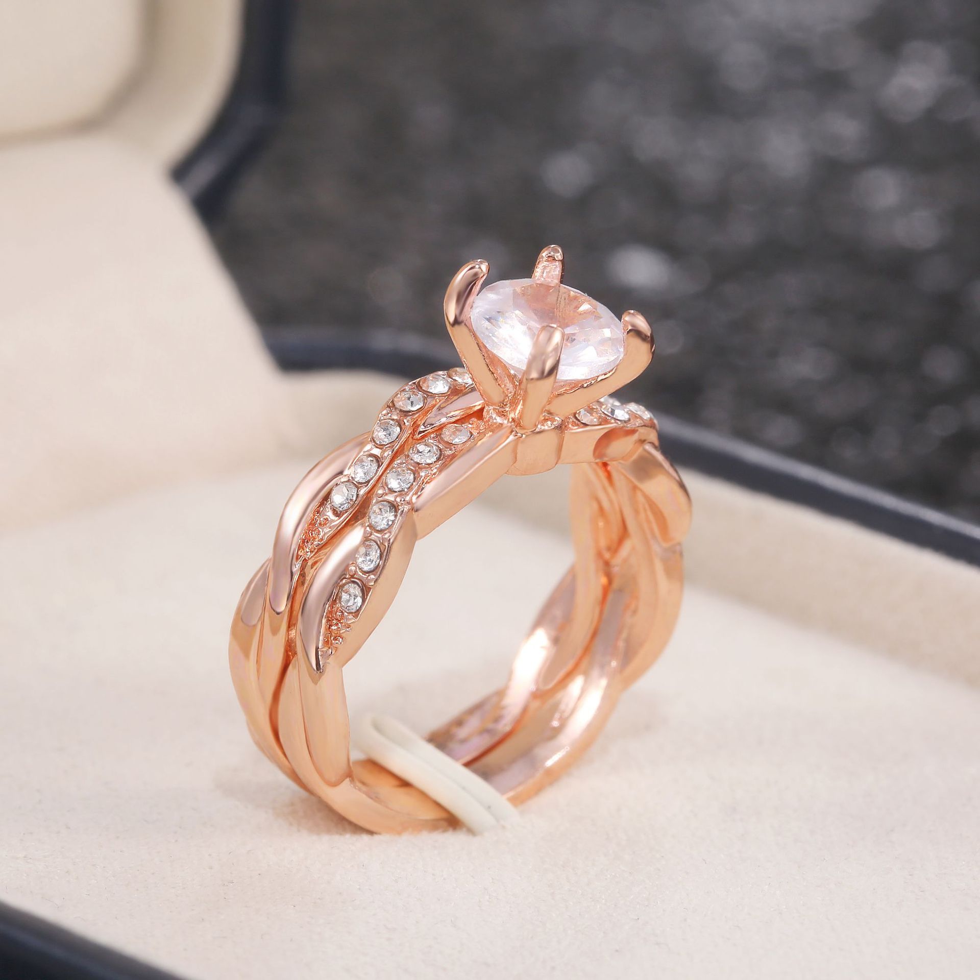 Classic four-claw imitation zircon micro-inlaid ring women's double row two-color twist arm ring engagement wedding ring women