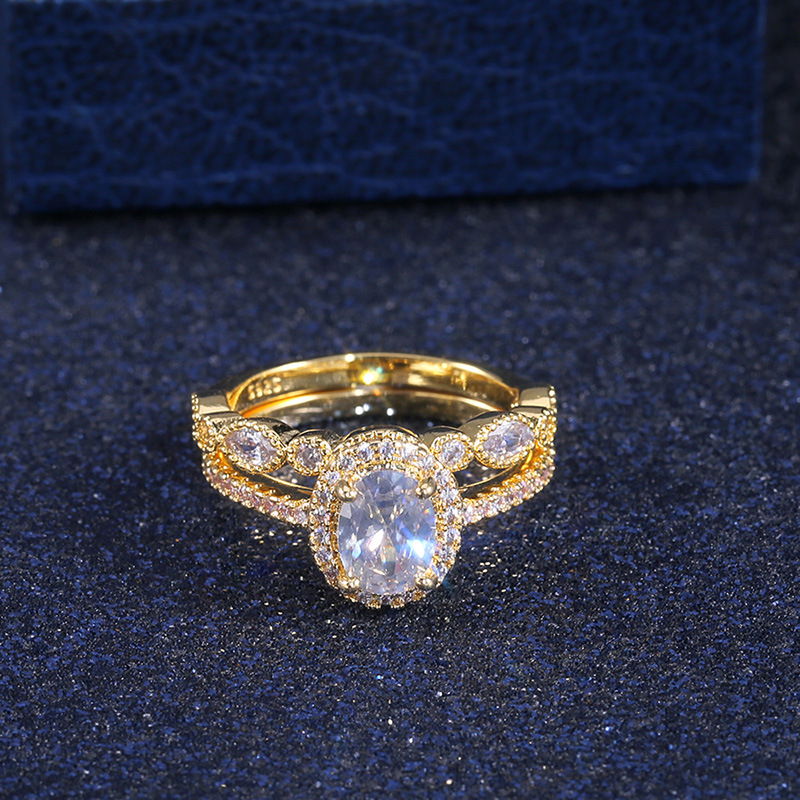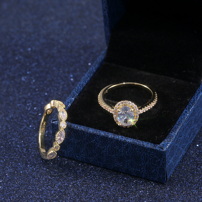 New jewelry European and American fashion zircon wedding rings gold color copper romantic imitation diamond ring