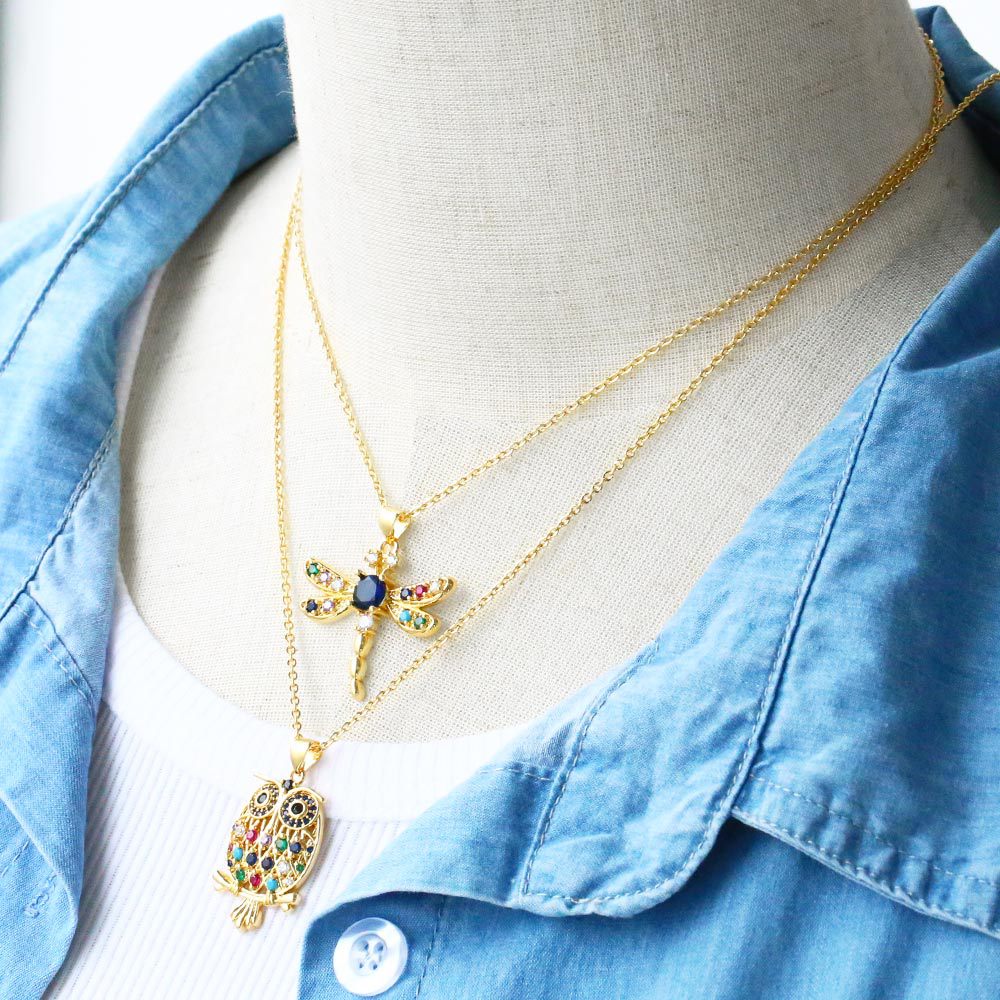 New jewelry European and American simple cute diamond owl dragonfly pendant necklace clavicle chain nkb545