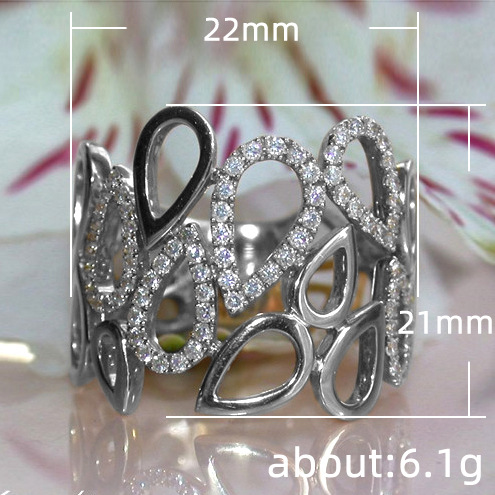 New jewelry exaggerated personality teardrop-shaped hollow micro-inlaid ring ladies fashion jewelry wholesale