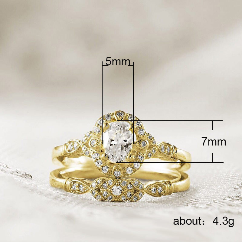 Classic four-claw imitation zircon micro-inlaid ring women's double row two-color twist arm ring engagement wedding ring women
