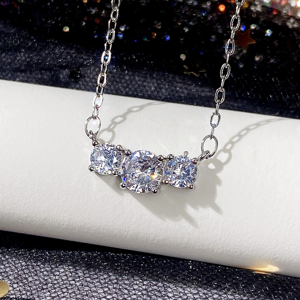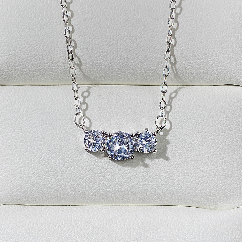 New jewelry fashion simple three zircon necklace female student versatile clavicle chain gift