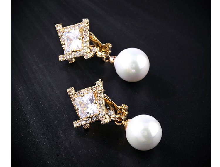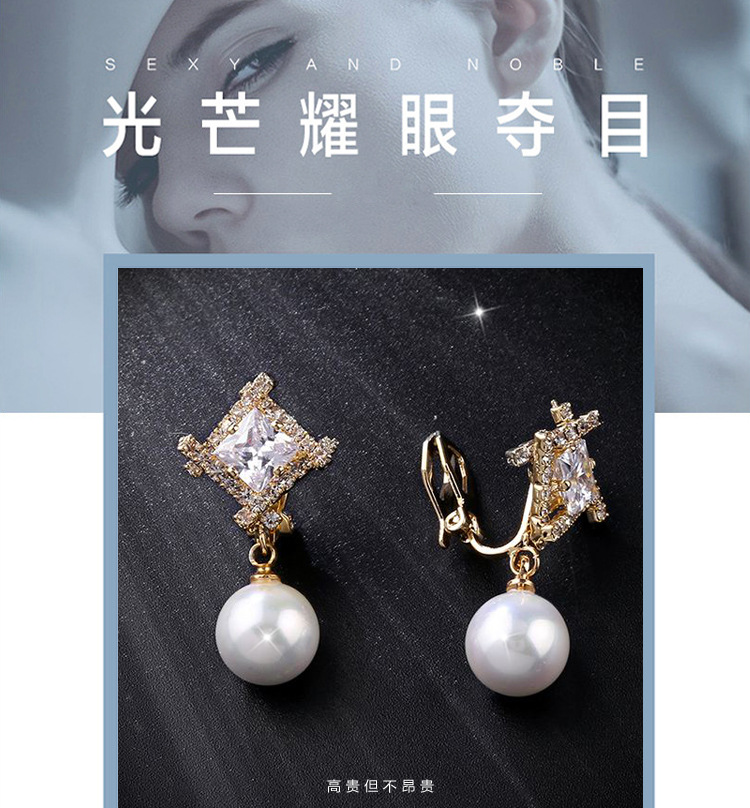 New jewelry geometric zircon pearl earrings female comfortable non-pierced ear clip high-end earrings erj34