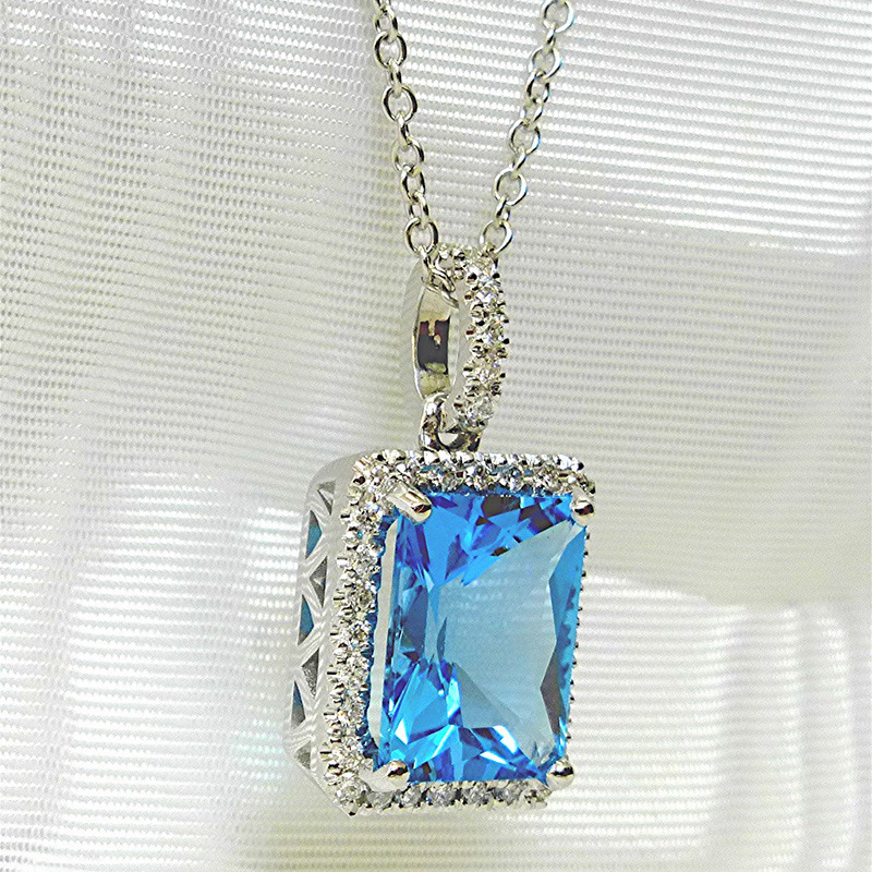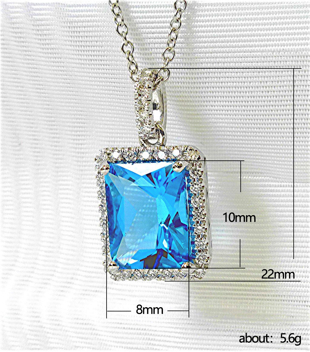 New jewelry is simple and versatile sea blue square diamond zircon necklace anniversary celebration jewelry