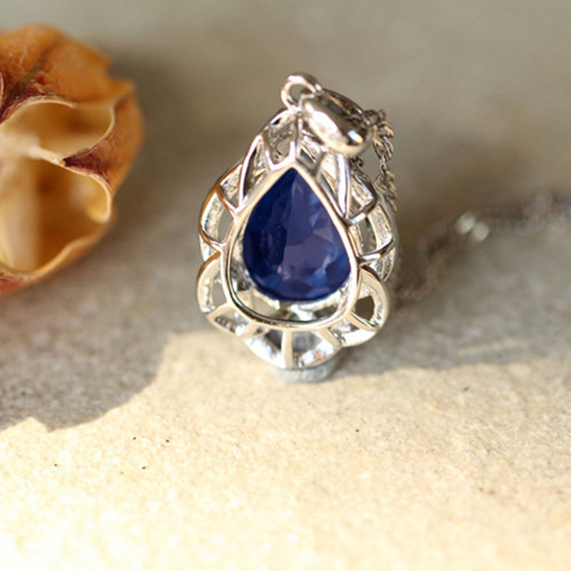 New jewelry luxury simulation royal blue zircon necklace light luxury colored gemstone pendant for women