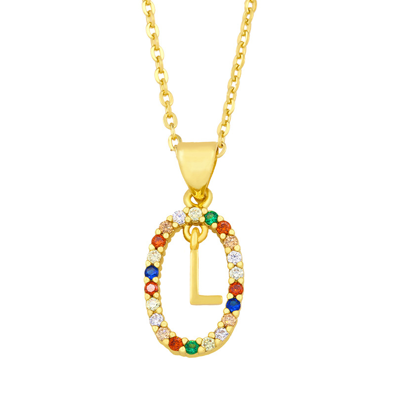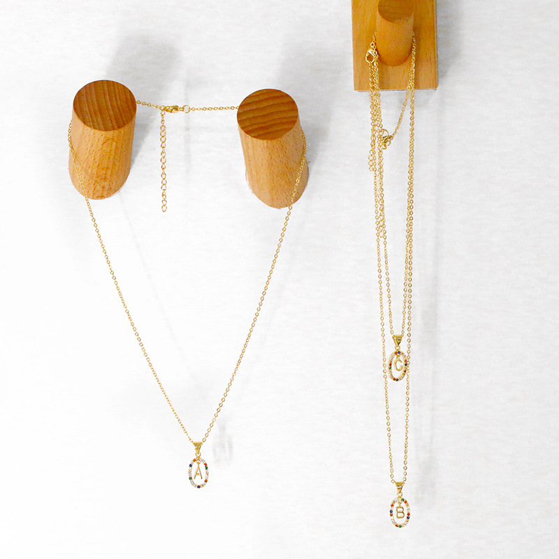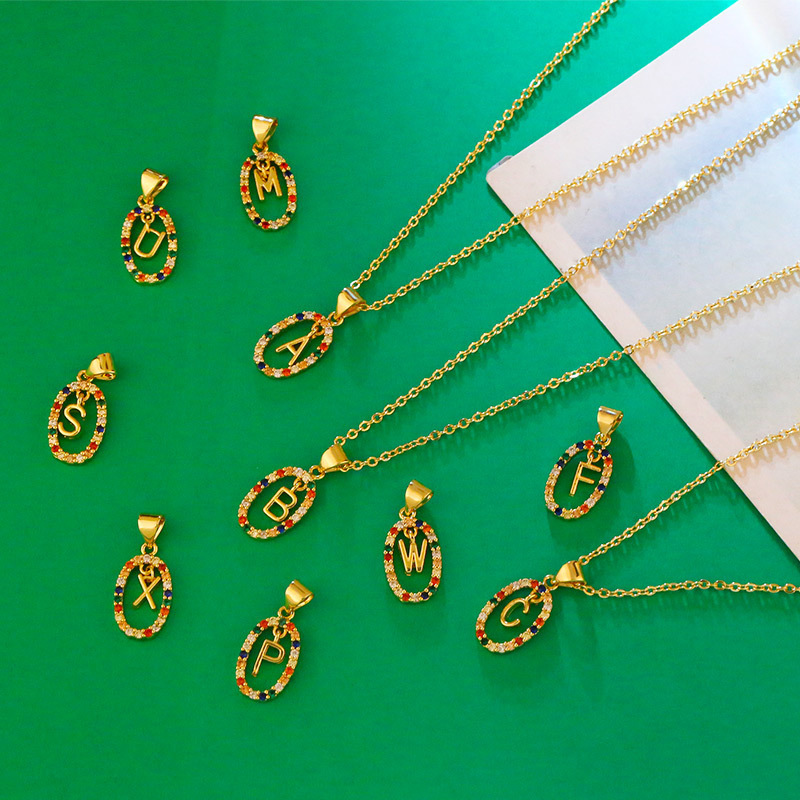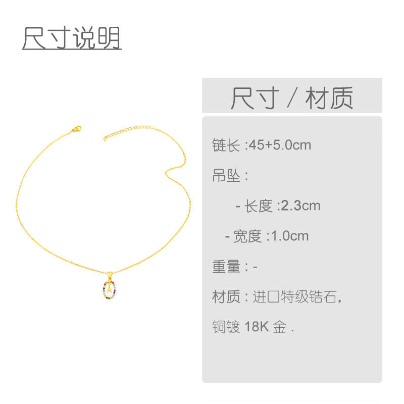 Jewelry new hot selling colored zircon 26 English letters pendant necklace gold-plated clavicle chain nku83