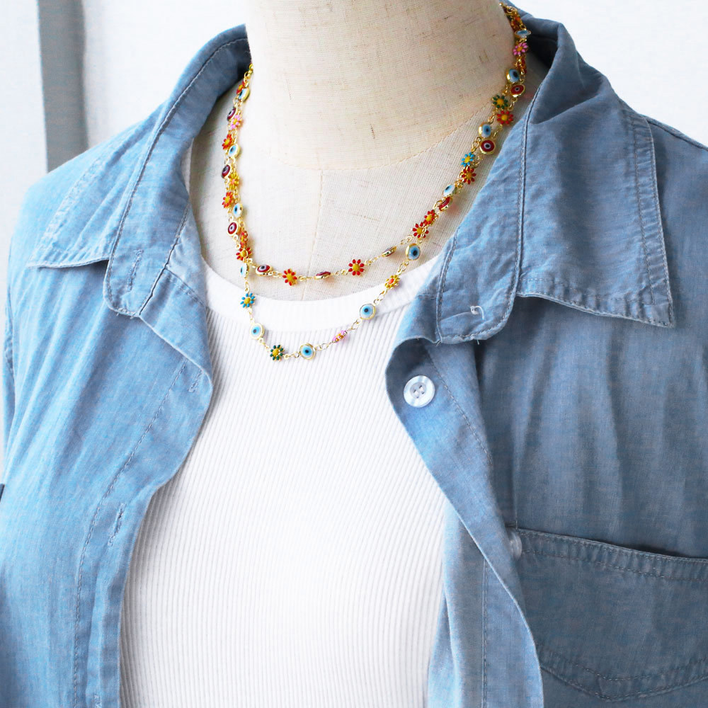 New jewelry niche personality small daisy splicing evil eye necklace bracelet jewelry set nkb538