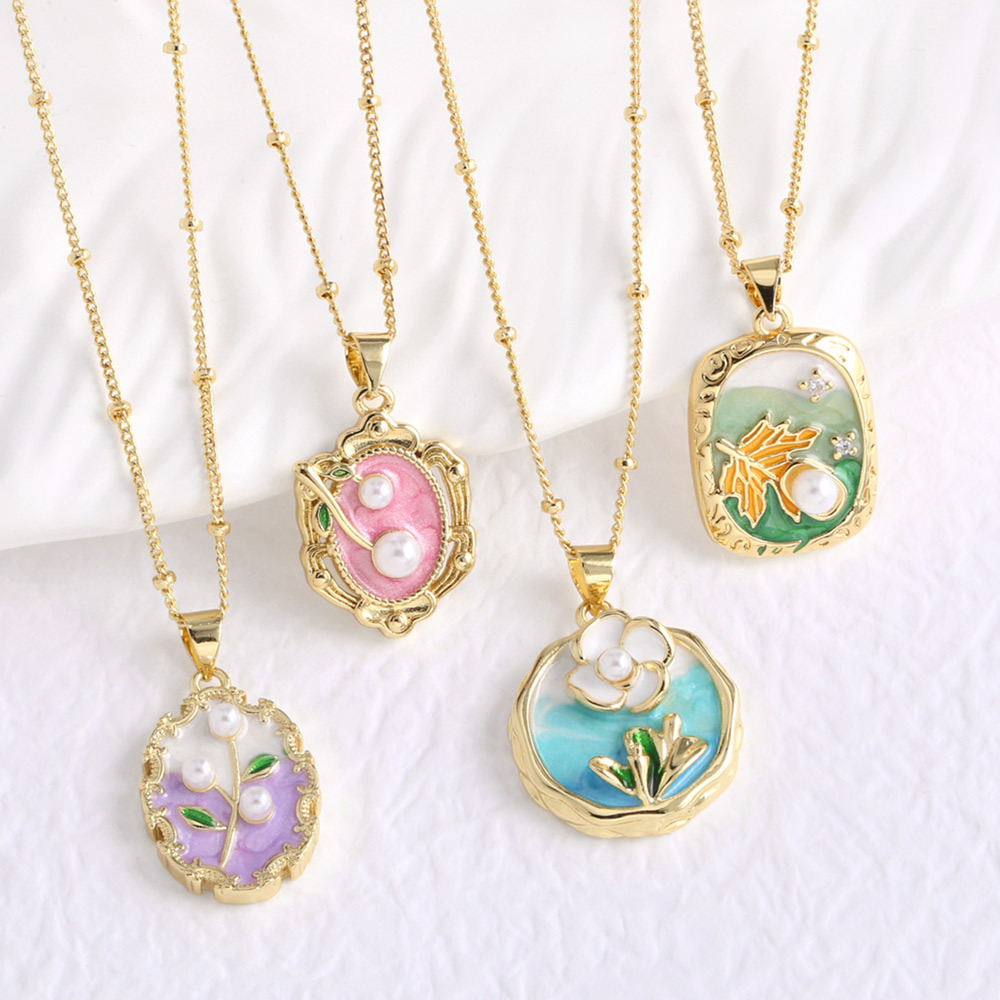New jewelry pearl flower oil drop pendant necklace clavicle chain nkb122 necklace