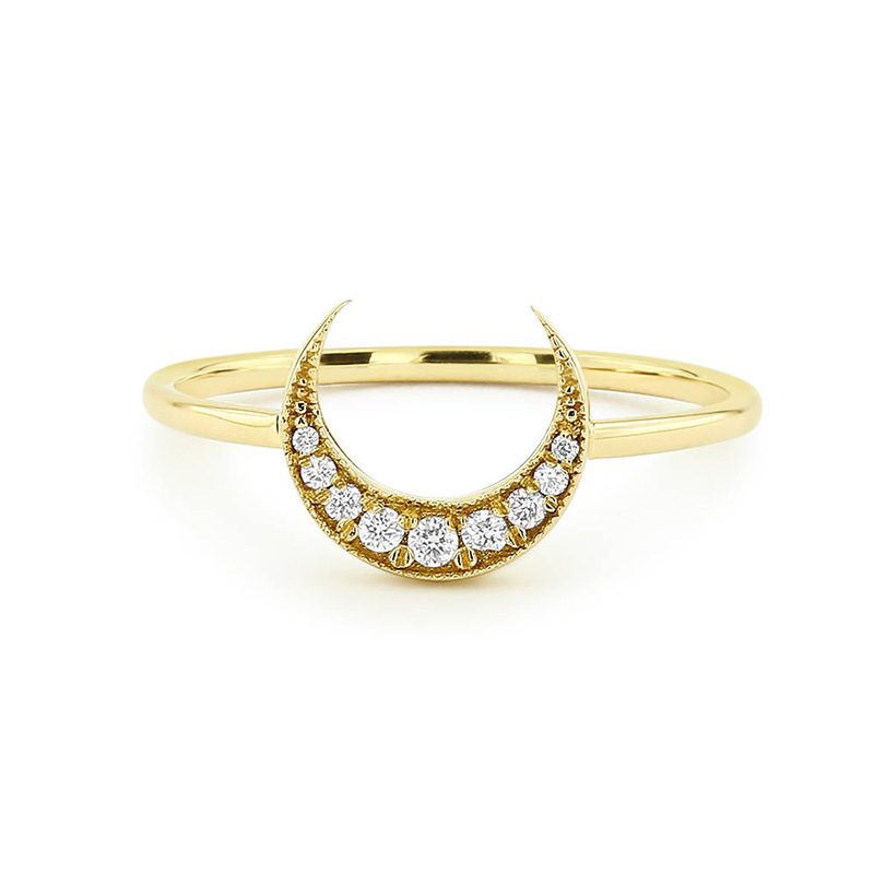 New jewelry simple crescent micro-inlaid zircon women's ring fashionable exquisite hand jewelry wholesale