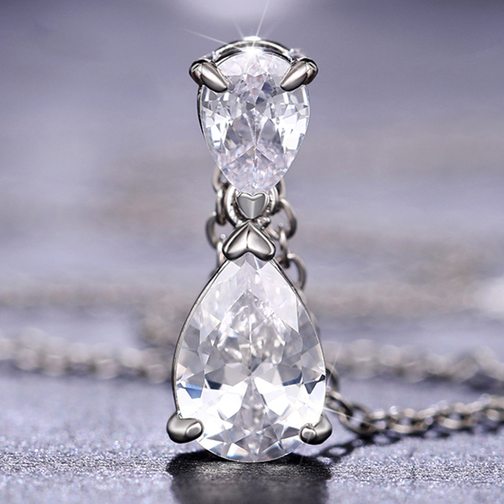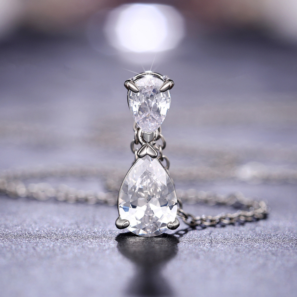 New jewelry simple style geometric teardrop shape zircon necklace minimalist style sweater chain